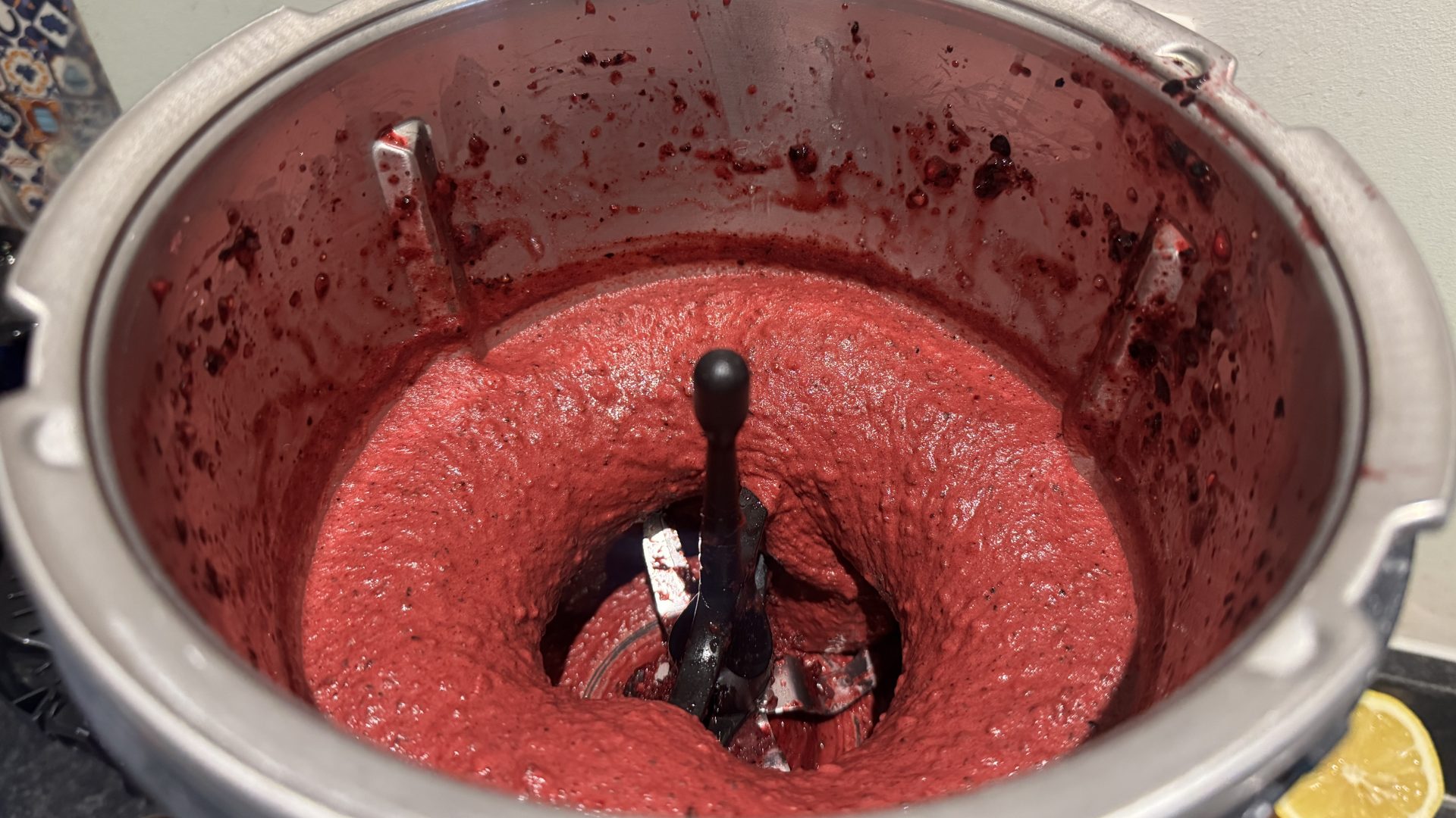 Не растерявшись, я перешла к следующему испытанию: супу с грибами. Здесь я хотела проверить, насколько хорошо машина справляется с обработкой продуктов, и она с этим справилась на отлично. У меня получился удивительно нежный и вкусный суп. Единственная проблема: во время работы она ужасно шумела. Когда я измельчала замороженные ягоды для сорбета, мой шумомер показал 99 дБ (эквивалентно шуму поезда в метро).