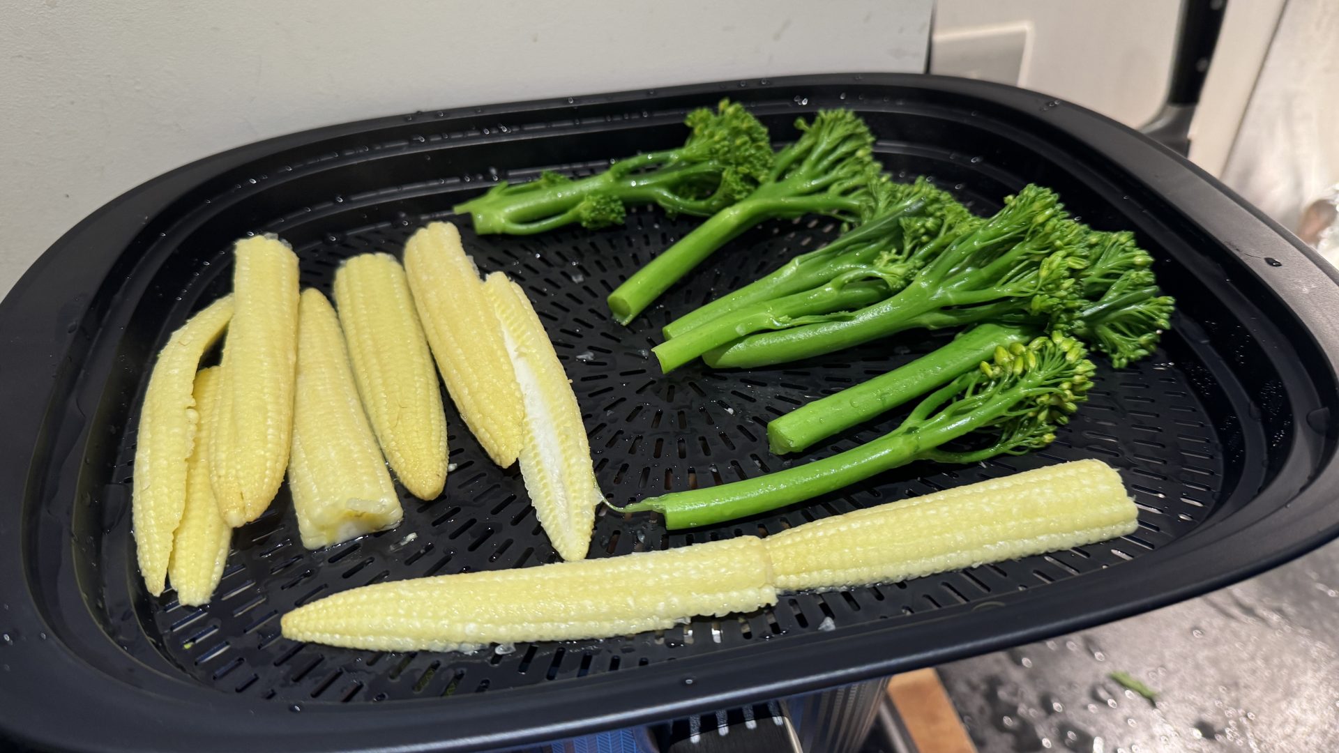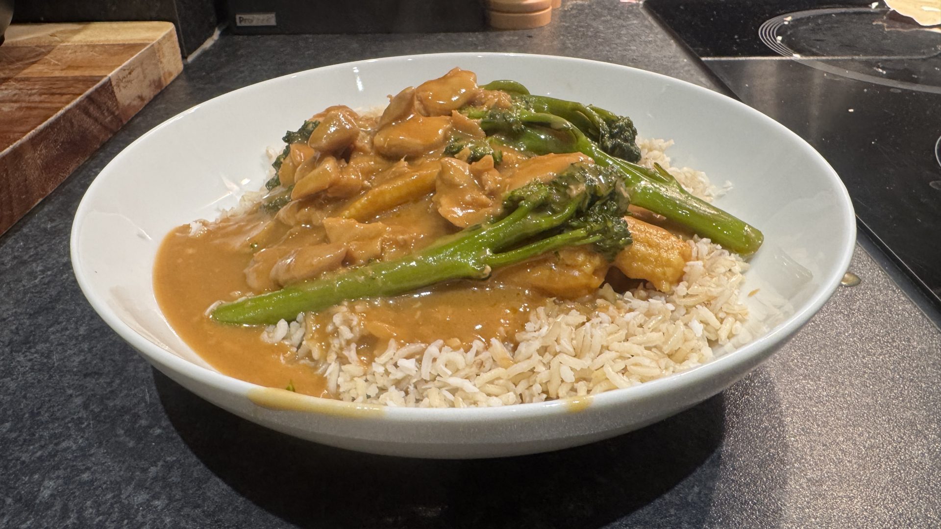 Тем не менее мне понравилось, что на следующем этапе рис готовится в основной чаше, а курица и овощи — в паровом лотке сверху. В итоге курица получилась нежной, рис — идеально приготовленным, а арахисовый соус — вкусным.