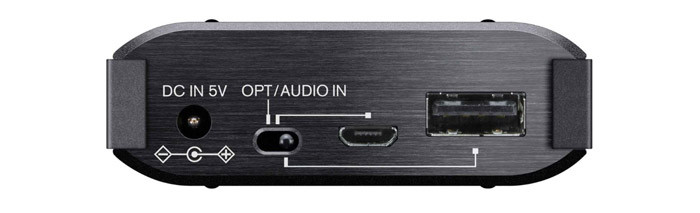 Количество входов, тем более для портативного устройства, поражает: кроме двух USB (полноразмерный USB A и micro-USB), есть еще и оптический, совмещенный с линейным. Имеется также и переключатель коэффициента усиления.