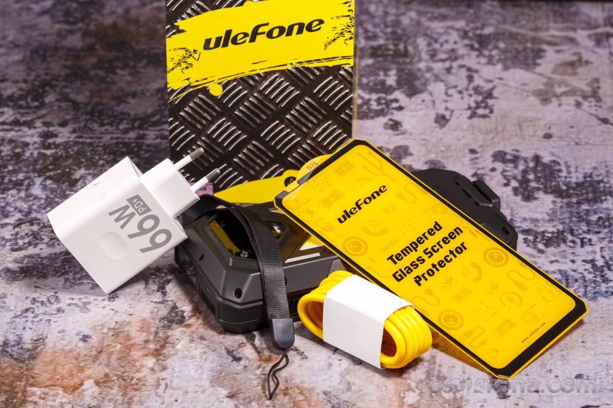 За эту цену вы получаете щедрый комплект. Ulefone поставляет Armor 34 Pro с зарядным устройством мощностью 66 Вт, кабелем USB-C, ремешком на запястье и защитным стеклом из закалённого стекла.