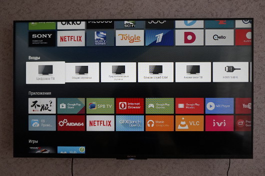 Теперь пару слов о начинке: Sony Bravia W80C сделан на базе платформы MediaTek. Использована двухъядерная платформа mt5890 (Cortex-A17), дополненная 2 Гбайт оперативной и 8 Гбайт постоянной памяти, доступной пользователям, чего, конечно, маловато. За обработку графики отвечает чипсет Mali-T624. Хотя выбранная платформа и не самая производительная, со всеми задачами она справляется на ура. Телевизор включается быстро, перемещение по интерфейсу и запуск приложений осуществляются без задержек . Справился Sony Bravia W80С с 4К-видео в файлах MKV. Не вызвали у него затруднения и 3D-игры из Google Play, но без геймпада, как уже было упомянуто, здесь не обойтись.