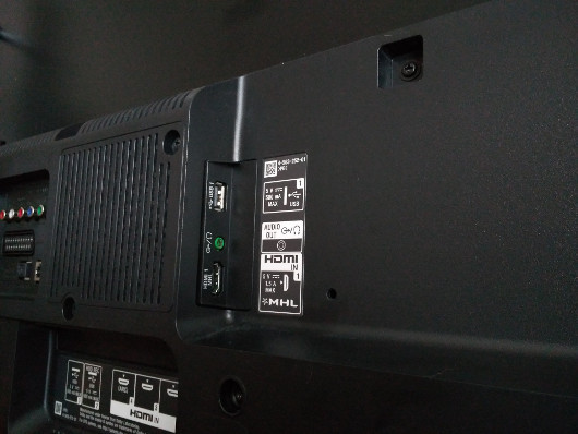 Задняя поверхность Sony Bravia W80C изготовлена из черного матового пластика. С левой стороны размещен блок кнопок для управления — просто на всякий случай. Пользоваться им регулярно конечно же не очень удобно.