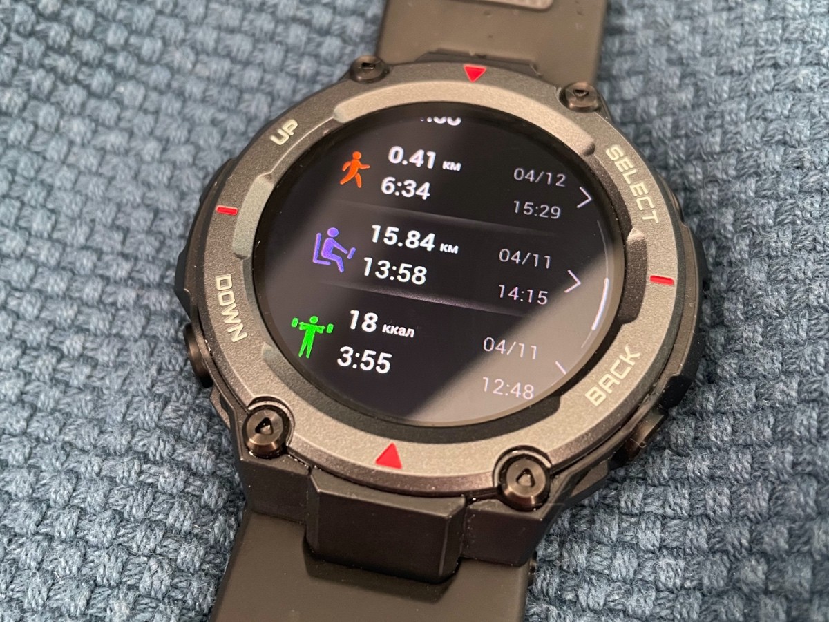 Amazfit T-REX Pro поддерживают более 100 тренировочных режимов, включая экстремальные и экзотические, например, серфинг с парашютом. Для каждого из них можно настроить цель. Например, задать дистанцию, время занятия или потраченную энергию.