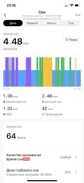Для синхронизации часов и смартфона используется приложение Zepp. Приложение удобное, логичное и — что важно — четко переведенное на русский язык.