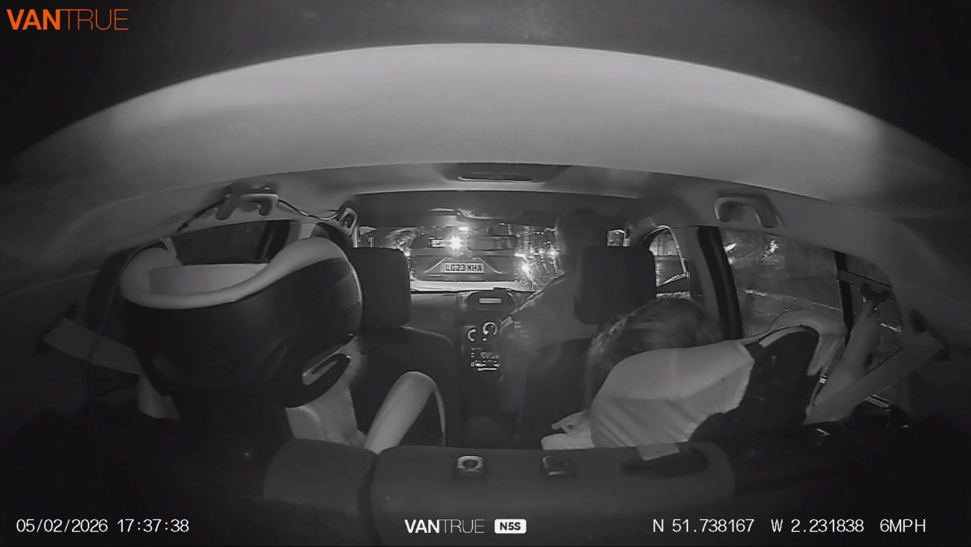 Когда темнеет, салонные камеры без запинок переключаются в инфракрасный режим и пишут в ч/б. Отрабатывают они надежно, но чудес не ждите: качество падает, и разглядеть что-то на улице через боковые стекла в таком режиме уже не выйдет.