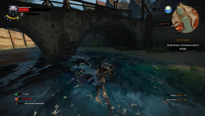 Геральт сносно плавает и ныряет. На дне встречаются сундуки со всяким добром