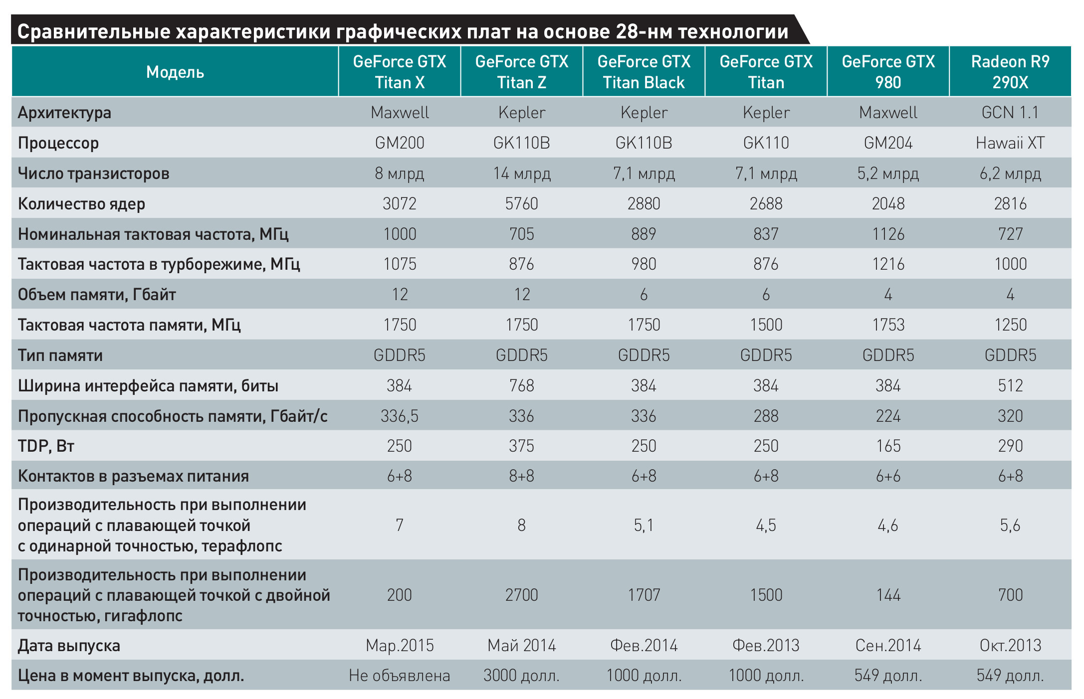 Большинство рядовых пользователей, конечно, не в состоянии помнить спецификации графических процессоров (в отличие от баскетбольной статистики за последние 64 года), поэтому мы свели все в таблицу. Плата Radeon R9 295×2 в нее не попала, но, по сути, она представляет собой два продукта 290X, объединенных в рамках одной конструкции.