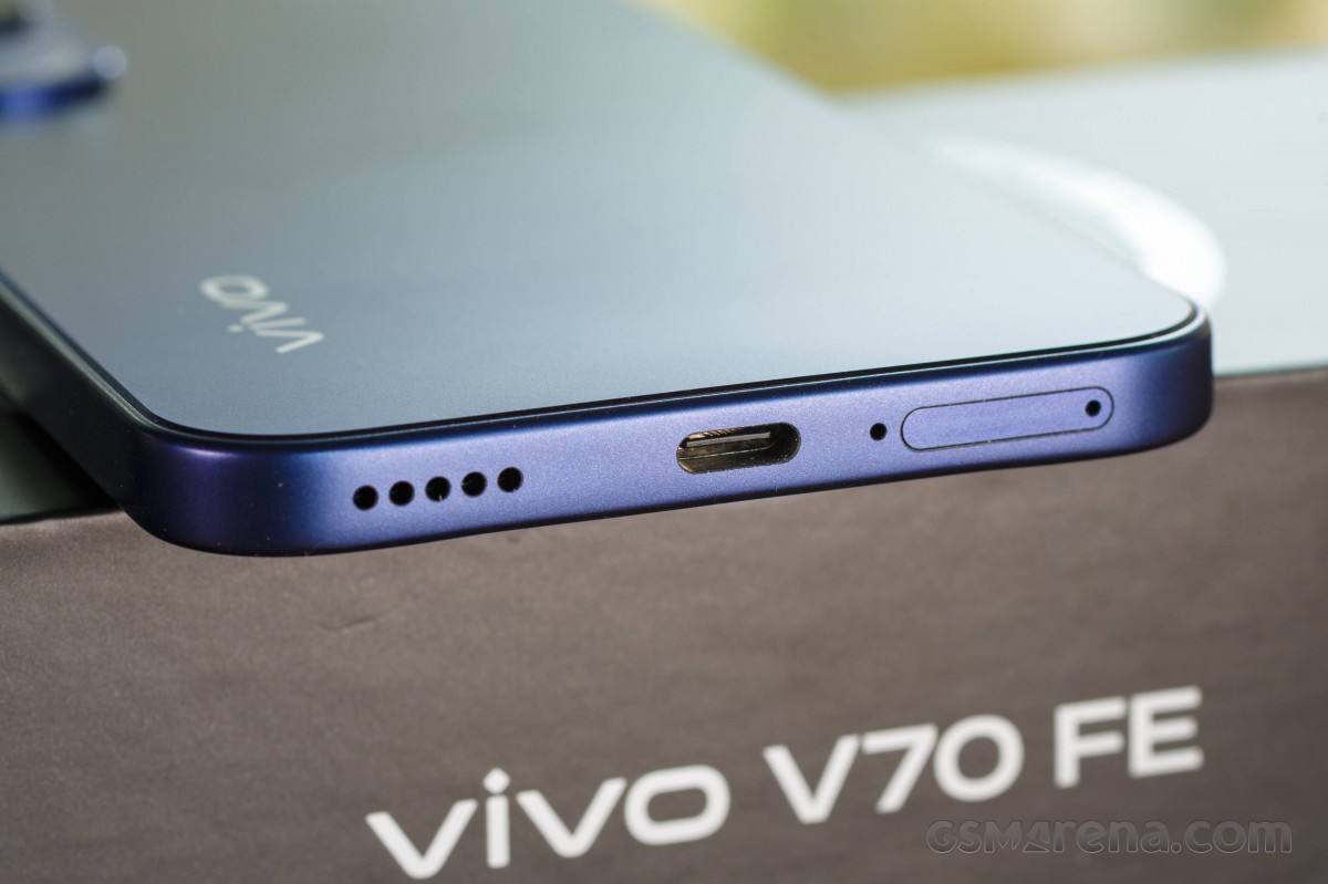 В текущем поколении Vivo явно экспериментирует с внешностью. Блок камер здесь вытянут вертикально, поэтому V70 FE совершенно не похож на старшие модели V70 или V70 Elite. Если честно, он больше отсылает к прошлогодней серии V60.