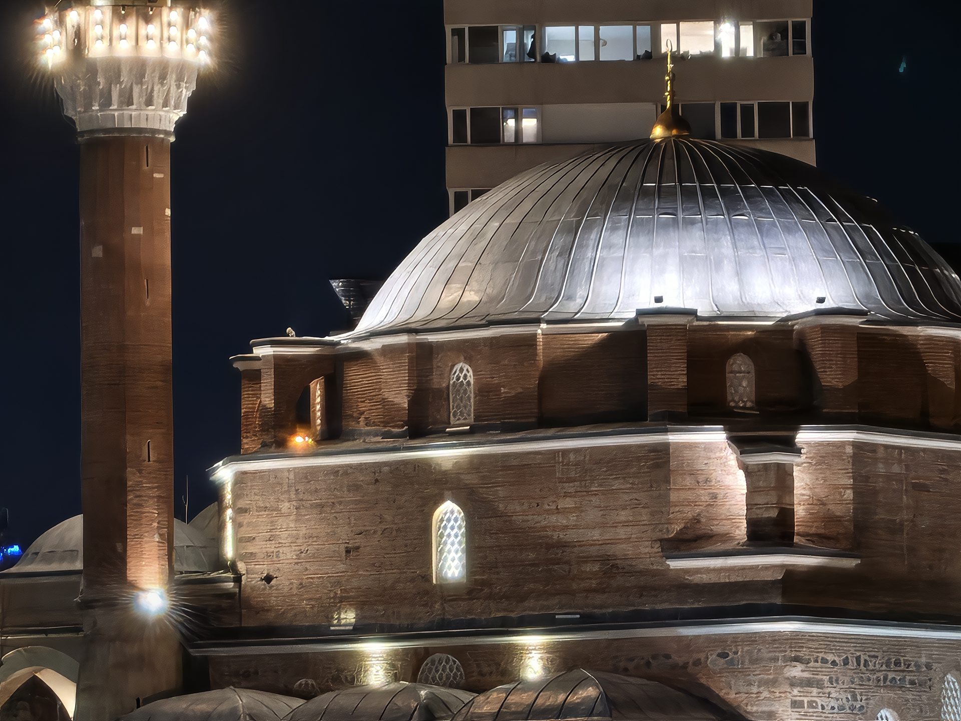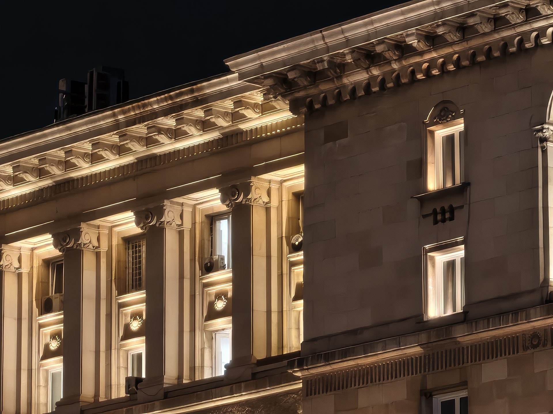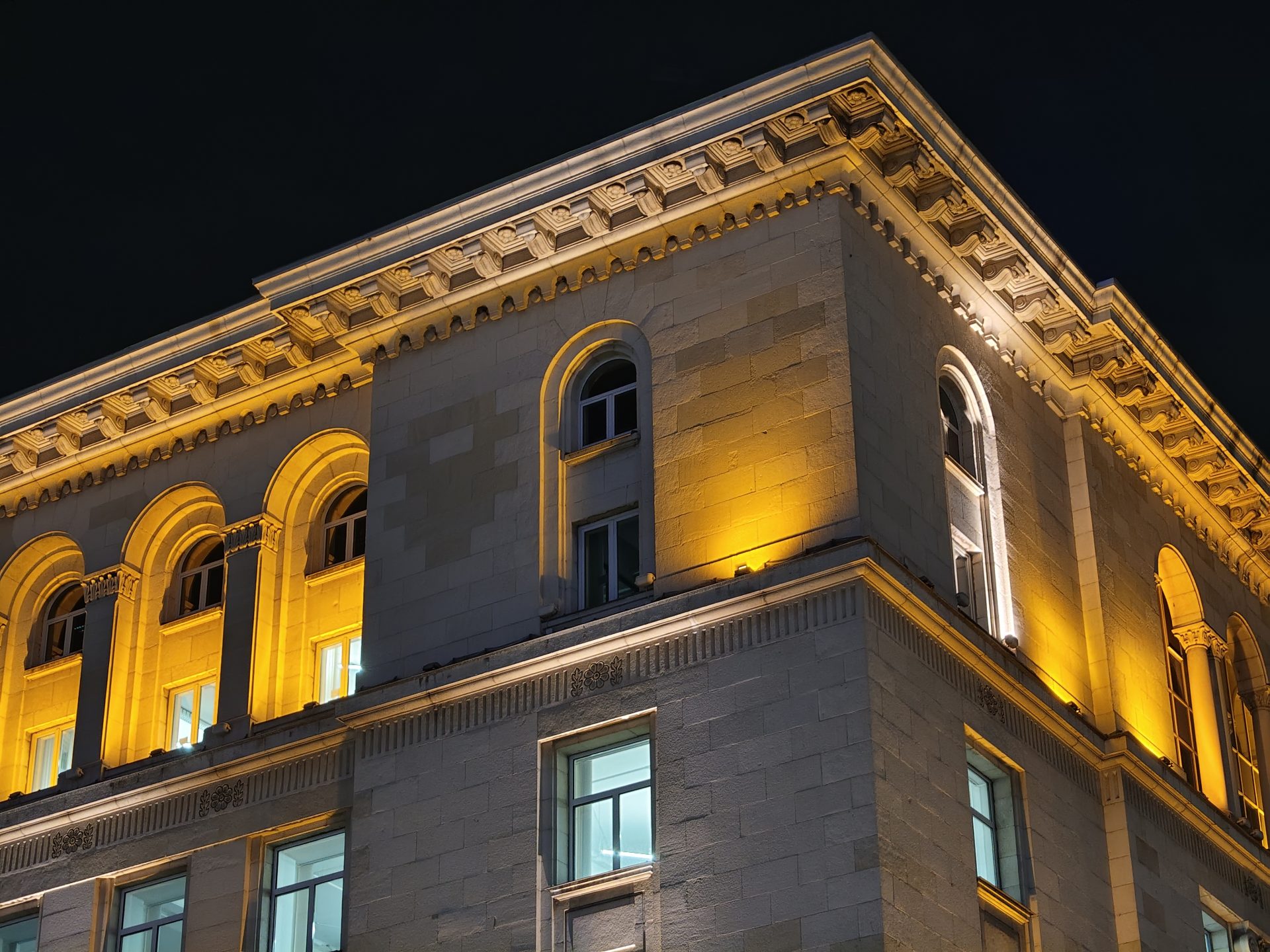 Ночью основная камера выдает очень достойную резкость, а легкий шум в тенях вообще не портит впечатления. Экспозиция, свет и цвета — всё на уровне. А вот телевик в темноте пасует: картинка становится шумной и очень мягкой. Ширик ночью снимает на троечку, но большего от него и не ждали.