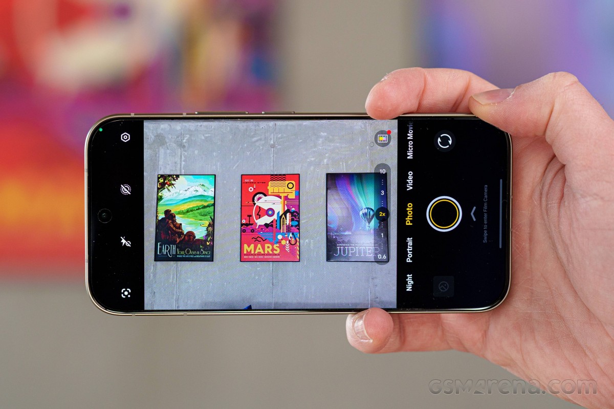 Оптический 3-кратный зум выдает классные цвета и шикарный контраст, но если начать вглядываться, магия рушится. Мелкие текстуры и наклонные линии выглядят рыхло и пиксельно. Глаз это слегка режет.