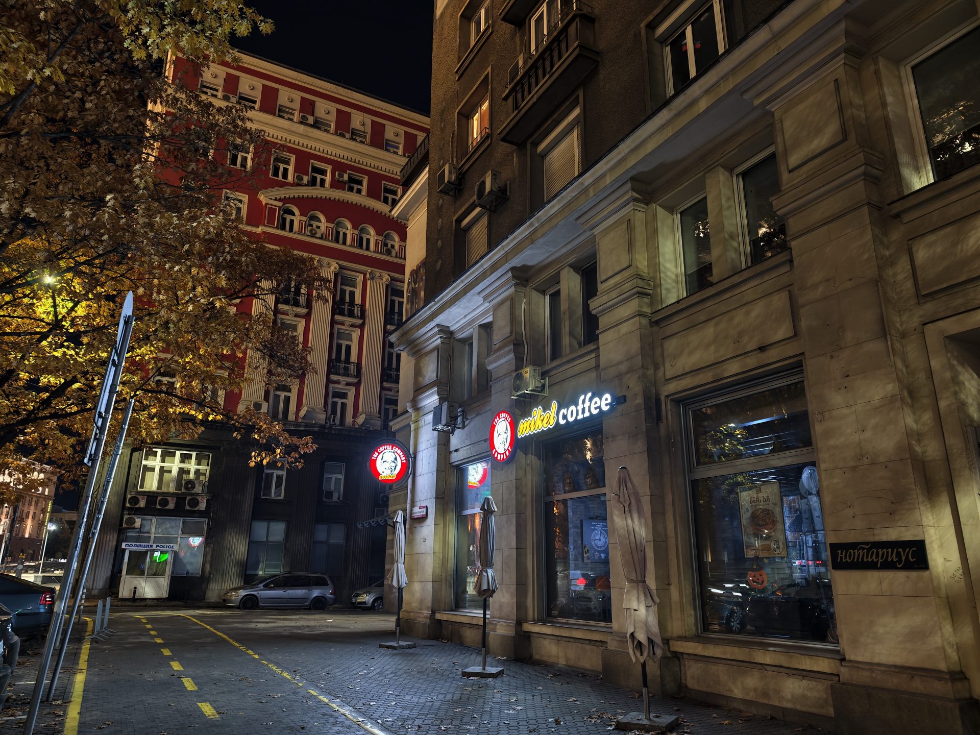 В темноте основная камера X300 Pro тоже отлично справляется. Она хорошо экспонируется и обладает широким динамическим диапазоном, обеспечивая чёткую проработку теней и контролируя светлые участки. Детализация тоже отличная. Мы не совсем уверены в том, как телефон передает янтарные источники света — дело не столько в неточности баланса белого, сколько в том, что насыщенность можно было бы уменьшить на пару делений.