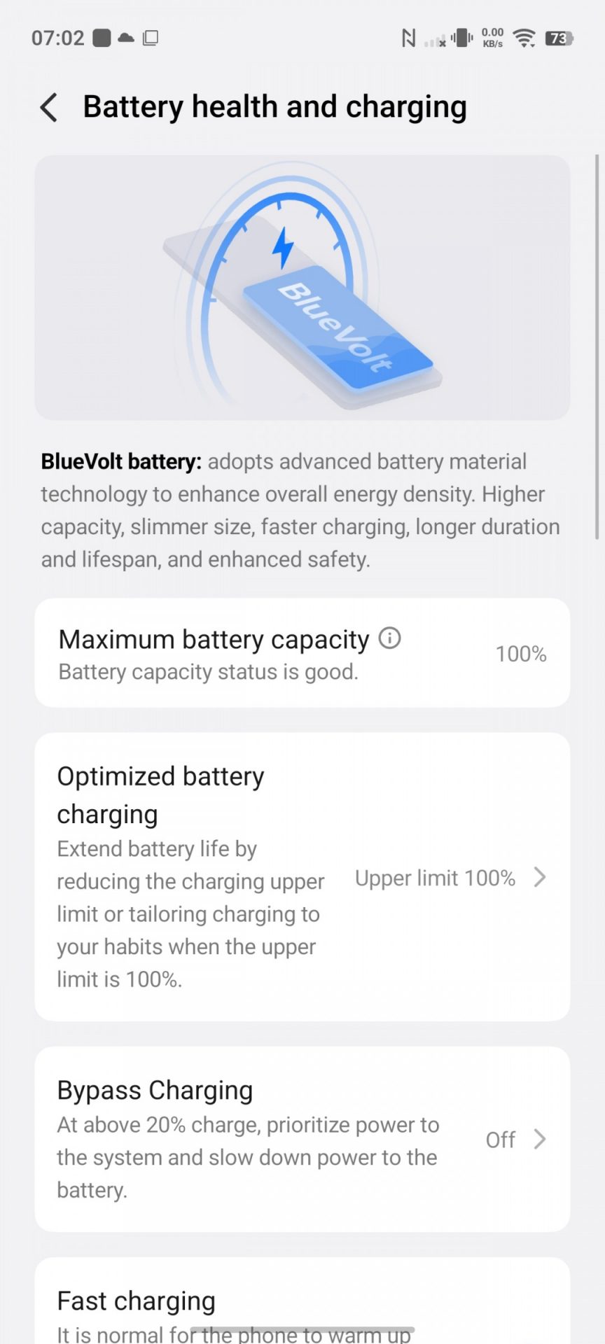 В последней версии OriginOS 6 представлено несколько функций для контроля состояния аккумулятора. Вы можете установить верхний предел зарядки — вплоть до 70%, как будто vivo недостаточно снизила ёмкость; можно настроить оптимизацию процесса зарядки на основе ваших ночных привычек; можно отключить быструю зарядку и использовать обходной режим зарядки (минимизировать мощность, подаваемую на аккумулятор, чтобы снизить его тепловыделение в ситуациях, когда это может быть вредно, например, в играх на уровне соревнований или подобных).