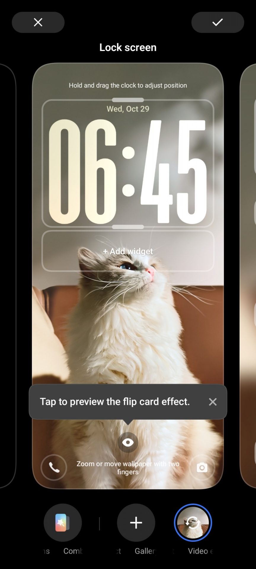 Flip cards — это функция экрана блокировки OriginOS 6, позволяющая выбрать до четырёх изображений из галереи и переключать их при наклоне телефона вбок. Это, пожалуй, круче, чем просто одиночные обои на экране блокировки. Действительно, здорово, как плавно часы меняют форму экрана блокировки и обратно.