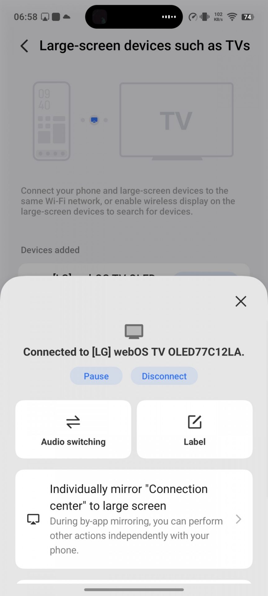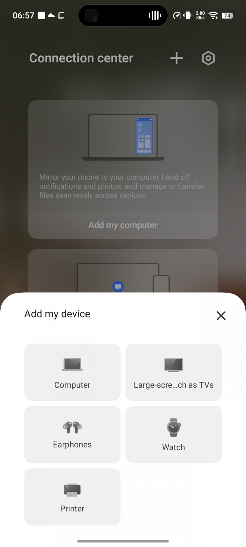 Теперь доступен Центр подключений vivo, своего рода центр OriginOS 6 для управления различными вариантами подключения. Доступна функция «Связь с ПК» с трансляцией экрана, передачей файлов и передачей задач. Вы также можете передавать данные одним касанием на другие устройства vivo или даже iPhone, но для этого потребуется установить приложение EasyShare от vivo на другой телефон — в первый раз это займёт несколько дополнительных нажатий.