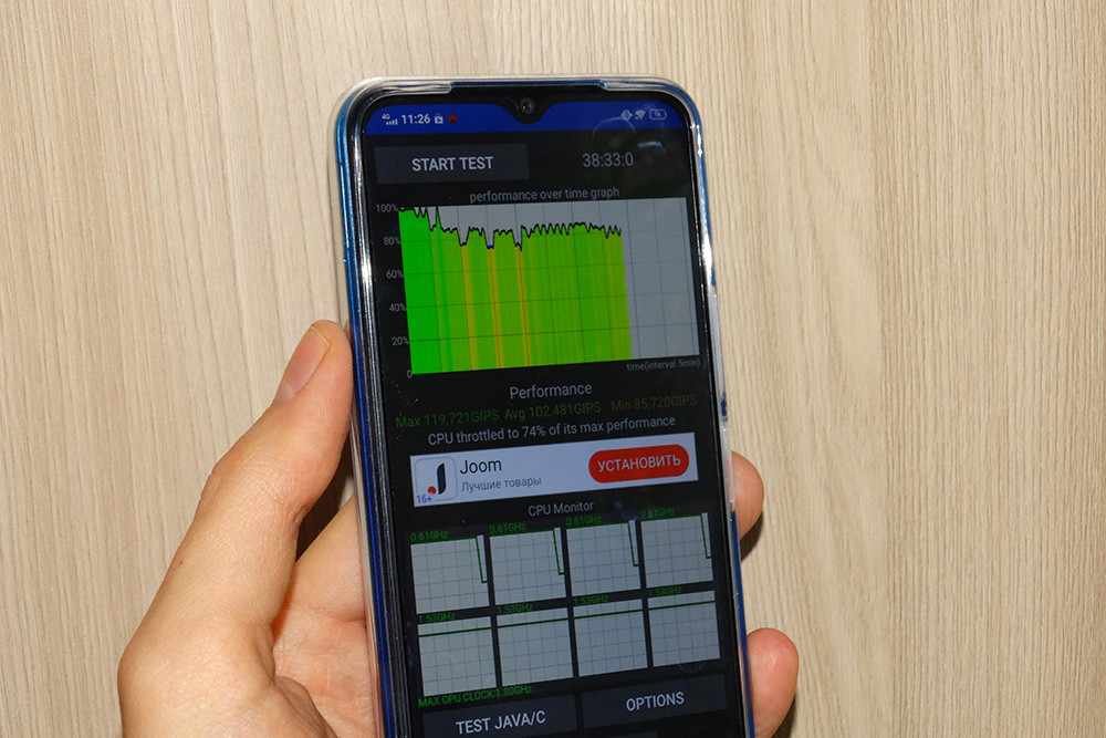 Значительного снижения производительности никогда не наблюдается, а еще смартфон при решении любых задач остается либо едва теплым, либо и вовсе холодным.