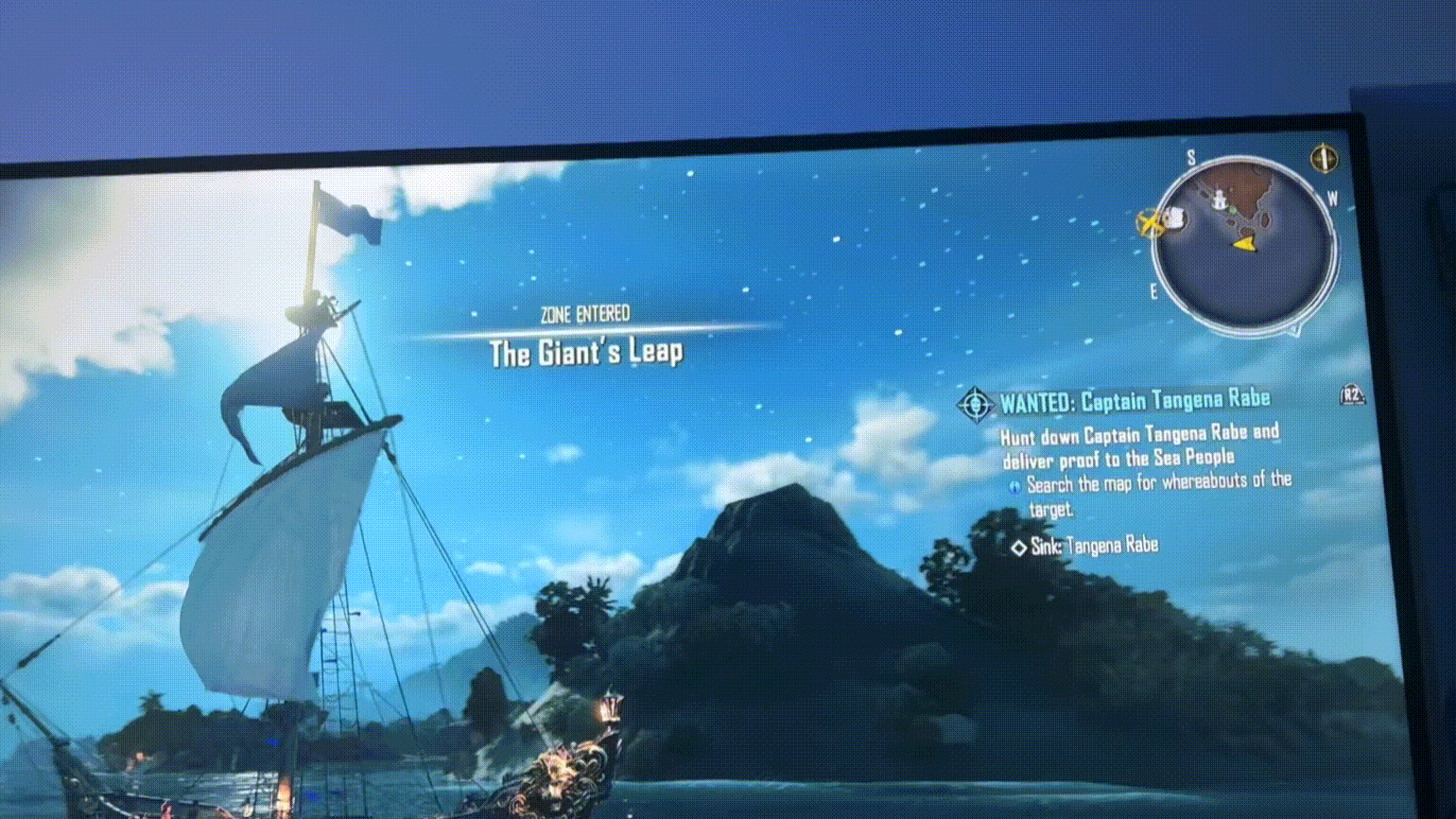 Skull and Bones, несомненно, не является одной из величайших игр, но так получилось, что в то время в неё играл мой напарник. В её защиту можно сказать, что в ней есть открытый мир, который предоставляет достаточно информации для синхронизации с приставкой. Как я и ожидала, тёмно-синее море в игре очень красиво отражалось на стене за моим экраном, но особенно впечатляющим было то, как молния пронзила игровое небо.
