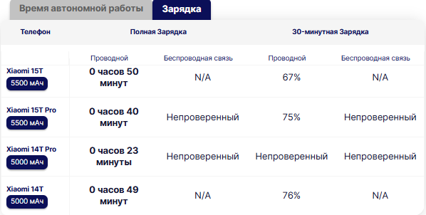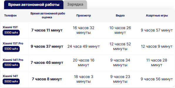 В Xiaomi 15T установлен точно такой же аккумулятор ёмкостью 5500 мАч, как и в модели Pro. В нашем тесте аккумуляторов Xiaomi 15T Pro занял первое место и на данный момент является лидером среди телефонов, протестированных за последние два года.