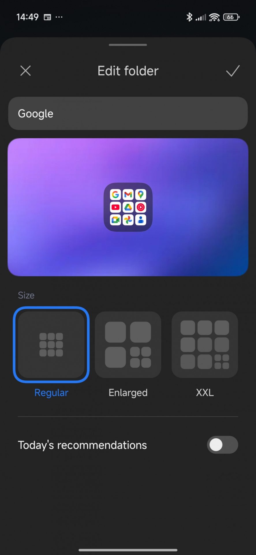 В HyperOS 2 есть отдельные страницы уведомлений и центра управления, но нет возможности объединить их в один интерфейс. На главных экранах можно размещать приложения и виджеты, а также использовать два типа больших папок. Доступ к главному экрану -1 можно получить только через Google Discover или App Vault от Xiaomi, который, судя по всему, отсутствует в этой версии ОС.