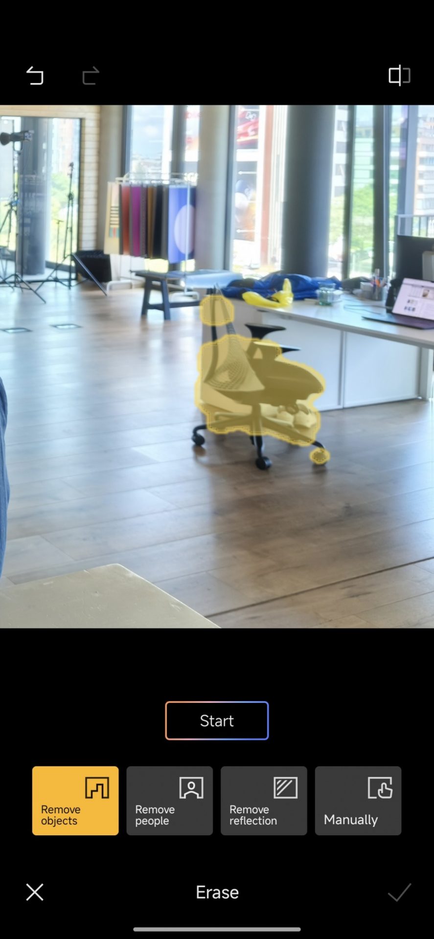В галерее представлено множество инструментов для редактирования изображений на основе искусственного интеллекта. Есть функция удаления объектов/людей, которая позволяет убирать отражения, выполнять расширение с учётом содержимого или корректировать внешний вид неба на снимках.