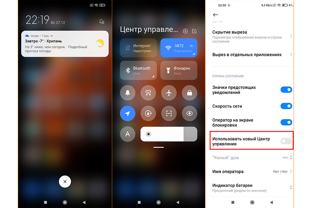 Как обычно, оболочка напичкана огромным количеством функций, а из особенностей я бы выделил реализацию работы верхней шторки. Если провести пальцем из верхнего левого угла, то откроется список уведомлений, а вот в правом углу отдельно вынесены различные настройки. Тянуться в противоположный от руки угол едва ли будет удобно, хотя аппарат через настройки позволяет вернуть более привычную шторку, в которой сразу открываются и переключатели функций и уведомления (заходим в Настройки экрана/Центр управления и шторка уведомлений и переключаем регулятор напротив пункта Использовать новый центр управления).
