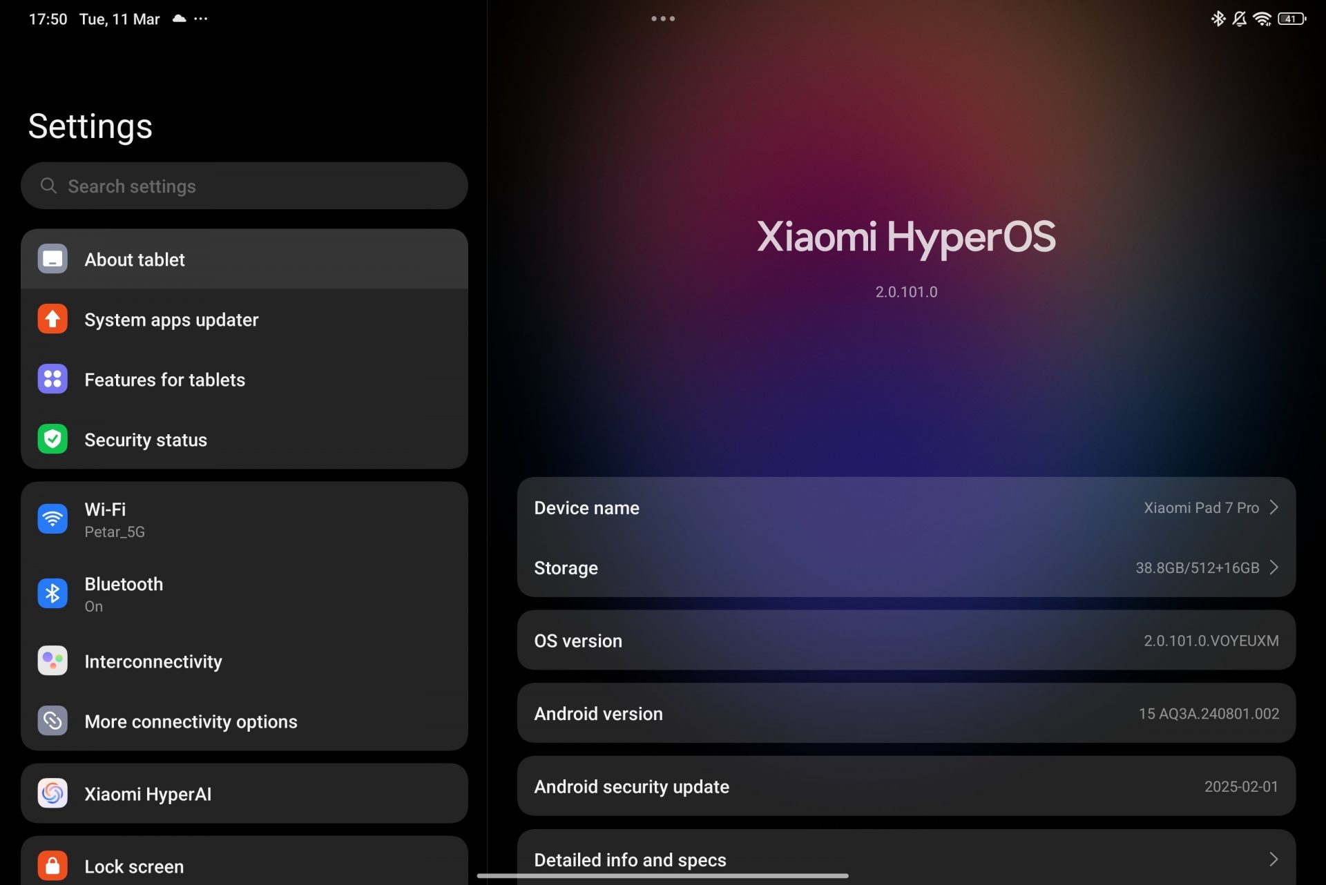 Xiaomi Pad 7 Pro поставляется с преемником MIUI, операционной системой Xiaomi HyperOS, и будет поддерживаться в течение четырёх лет.