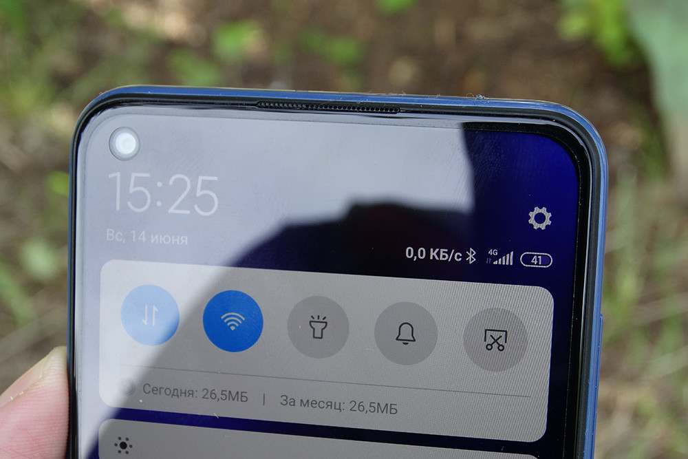 На экране изначально наклеена защитная пленка без олеофобного покрытия. Датчикам приближения и освещенности нашлось место чуть левее динамика. Некоторые владельцы смартфонов Redmi жалуются на проблему с датчиком приближения, но, совершив с десяток звонков, я ничего необычного не заметил. Возможно, в этом заслуга новых прошивок.