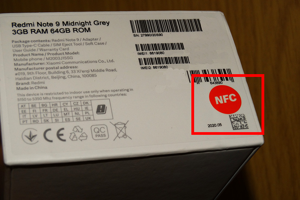Есть ли в Xiaomi Redmi Note 9 модуль NFC?