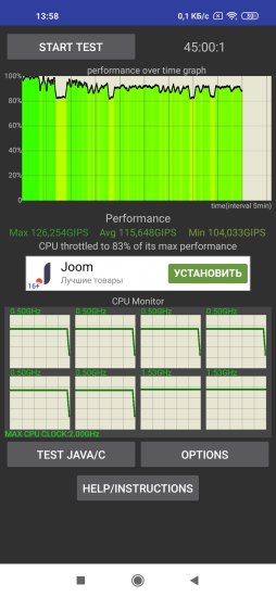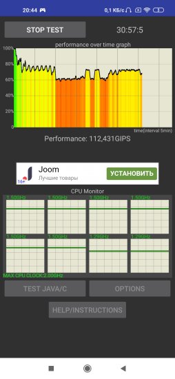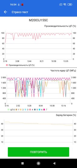 Слишком сильного нагрева смартфона не наблюдается, хотя он при запущенном троттлинг-тесте и становится ощутимо теплым как сзади, так и в правой верхней части передней стороны. Сам тест на троттлинг иногда проходит удачно, а иногда видно ощутимое снижение производительности, которого правда во время долгого прохождения игр не ощущается.