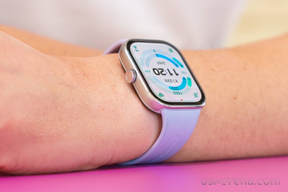 Открыв Watch 5, мы увидели красивые часы из алюминиевого сплава в сочетании с ремешком из термопластичного полиуретана лавандового цвета. Несмотря на цену в 110 евро, они производят впечатление более премиального устройства.