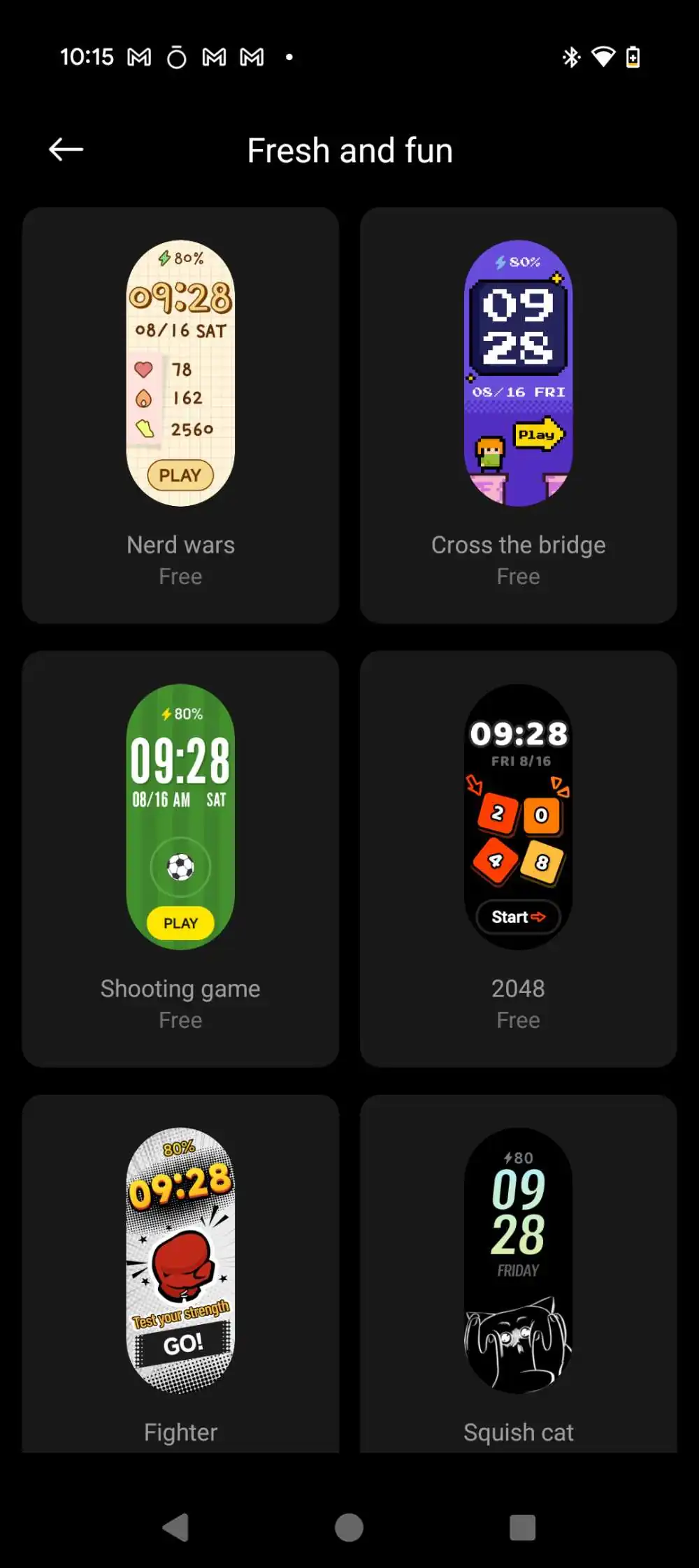 Один из самых быстрых способов персонализировать любое носимое устройство — это выбрать циферблат. Xiaomi предлагает более 200 вариантов — от классических до откровенно забавных. Мне очень нравится динамичная серия Pet, представленная очаровательной выдрой, которая пытается выпрыгнуть из экрана на изображении выше. Для тех из нас, кто ещё не вырос (как я), дисплей — идеальный размер для простых, но увлекательных мини-игр, встроенных в некоторые из новейших моделей бренда. Я получил массу удовольствия от циферблата Fighter, который позволяет проверить силу вашего удара, как в какой-нибудь виртуальной карнавальной игре.