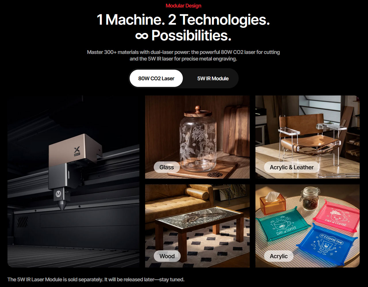 Кроме того, на подходе инфракрасный лазерный модуль мощностью 5 Вт, который расширит возможности и повысит совместимость с материалами для пользователей xTool P3. Мы всё ещё ждём информации о цене этого дополнительного модуля, который значительно улучшит возможности P3 по обработке мелких деталей, металла и пластика.