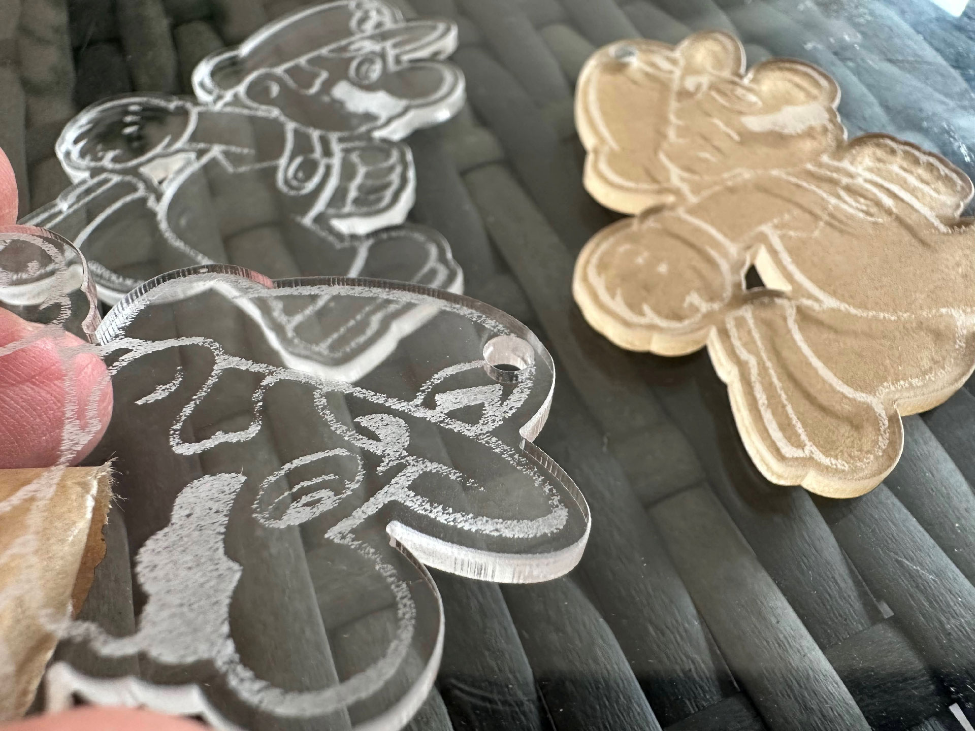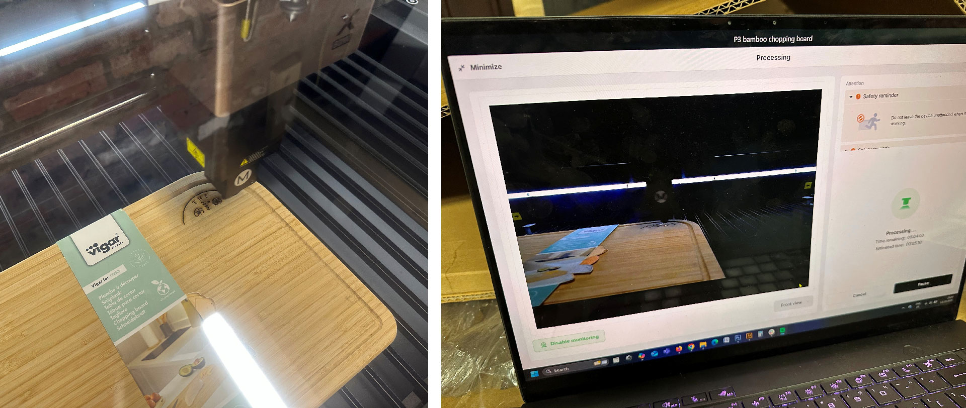 В некоторых свободных уголках использованного материала я решил разместить забавные бирки и брелоки. И гравировка, и резка здесь отлично вписались в готовую работу. Я использовал xTool для регулировки мощности и скорости.