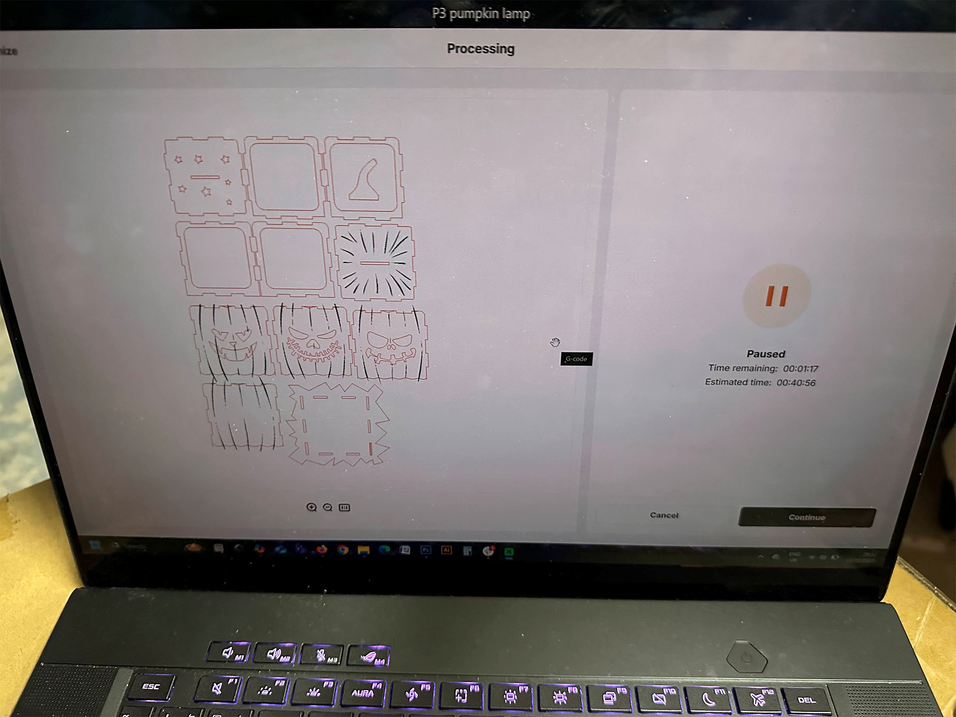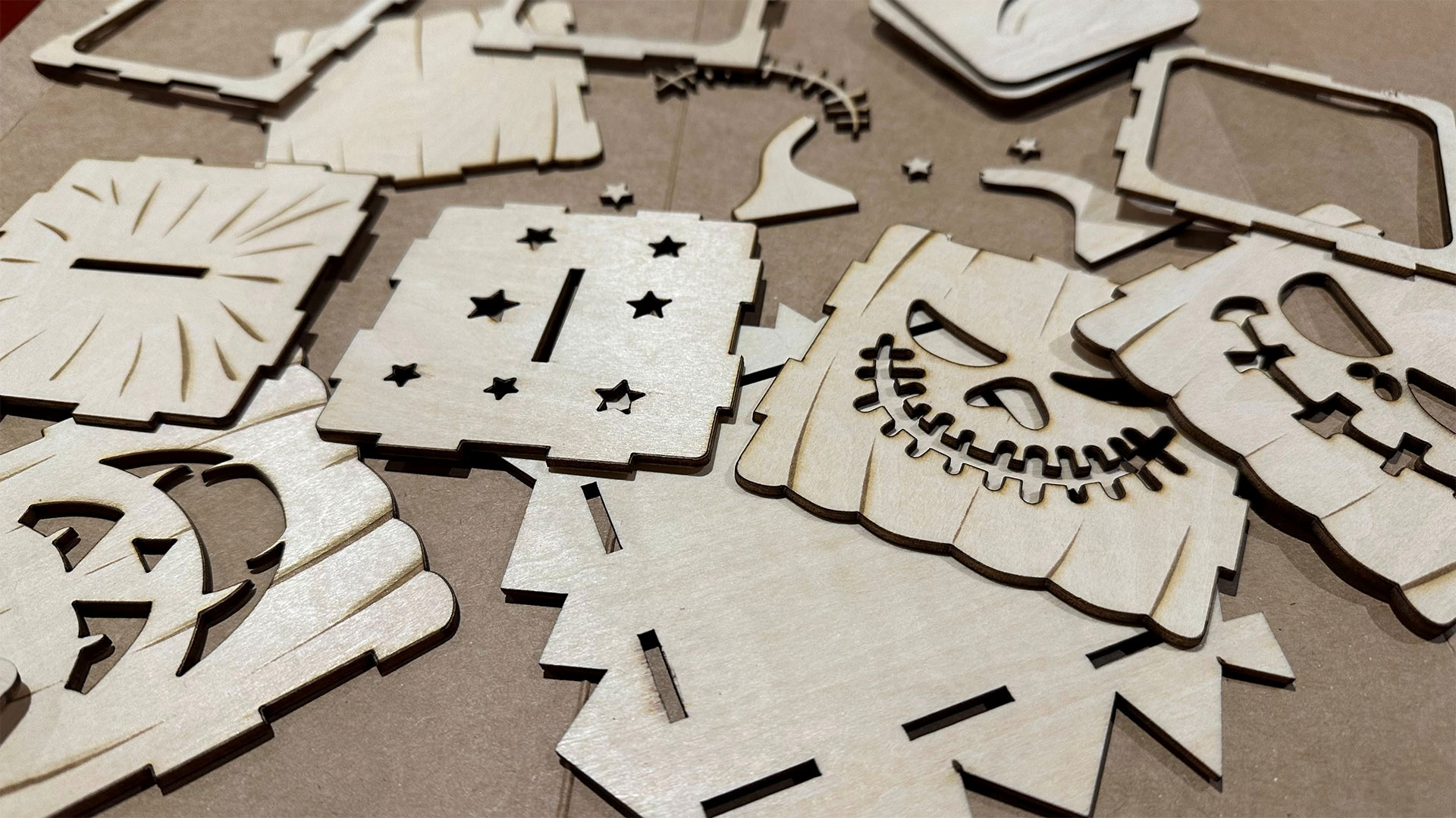 Моим следующим приключением с деревом стала гравировка и вырезание пары ламп для Хэллоуина, которые я увидела в разделе с предустановленными программами до того, как станок был доставлен. Учитывая время года, было трудно устоять перед соблазном попробовать свои силы в этом проекте.