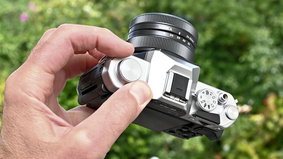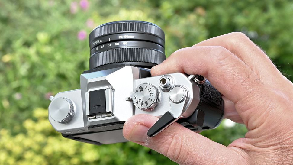 Что ещё более любопытно, сверху, справа от искусственного видоискателя, находится рычаг перемотки плёнки. Оттяните его немного назад, и он останется на месте, переводя камеру в более аналоговый режим съёмки. Каждый раз, когда вы делаете снимок, он отображается на заднем экране и остаётся там до тех пор, пока вы не воспользуетесь рычагом, чтобы «перемотать плёнку» и подготовиться к следующему снимку.