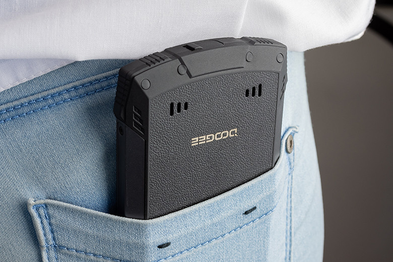 Аппарат мужской, брутальный, серьезный. Если вас достал дизайн типичных китайских трубок – берите Doogee S55, у него совсем другой стиль. Хотя, конечно, Doogee S55 рассчитан не на всех сразу – изящным дамам модель не подойдет в принципе. Толщина смартфона – 14 мм, вес – 250 г. Что отнюдь немало. Впрочем, это не мешает ему помещаться в карманы джинсов и летних шорт. Часами напролет по такой трубке не поговоришь, конечно, все же вес немаленький. Ну так можно купить Bluetooth-гарнитуру, они от 500 рублей идут. Сам так сделал и всем рекомендую.