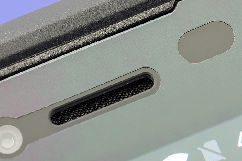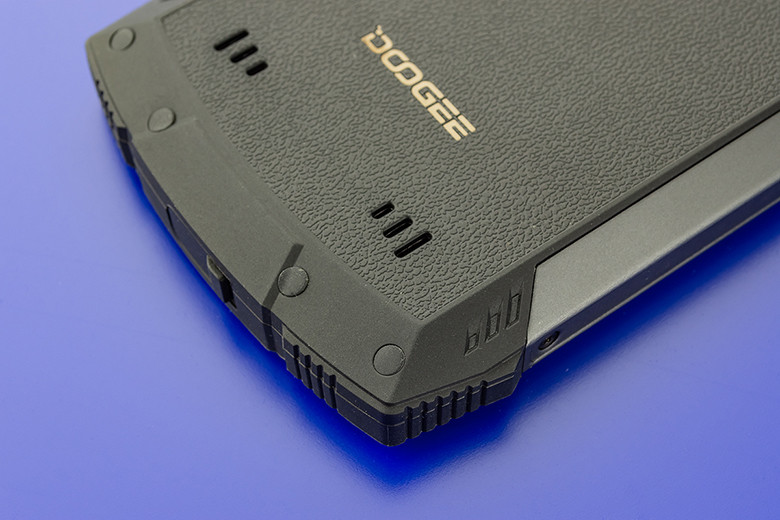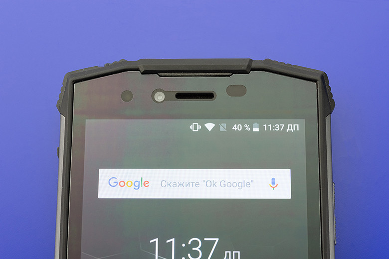 Над экраном расположились датчики освещенности и приближения (работают корректно), фронтальная камера и динамик. Последний прикрыт плотной тканью, причем сделано это с умом. Дело в том, что большинство защищенных смартфонов обеспечивают довольно низкое качество передачи речи. Как раз из-за дополнительной защиты динамиков. В Doogee умудрись все сделать так, чтобы и динамик был защищен, и звук при этом не портился.