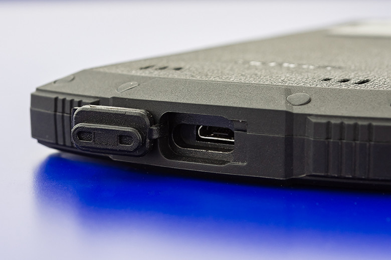 На верхней грани корпуса расположен 3,5-мм разъем для наушников, на нижней – MicroUSB (хотелось бы, конечно, модный и удобный Type-C, но в аппаратах за 10-11 тысяч рублей такой порт встречается крайне редко). Оба разъема укрыты массивными резиновыми заглушками. Обращу внимания, что гнезда не такие глубокие, как у некоторых «внедорожных» смартфонов. Большая глубина приводит к тому, что эти аппараты совместимы не со всеми USB-кабелями и наушниками. У Doogee S55 такая проблема отсутствует – кабели подходят любые.