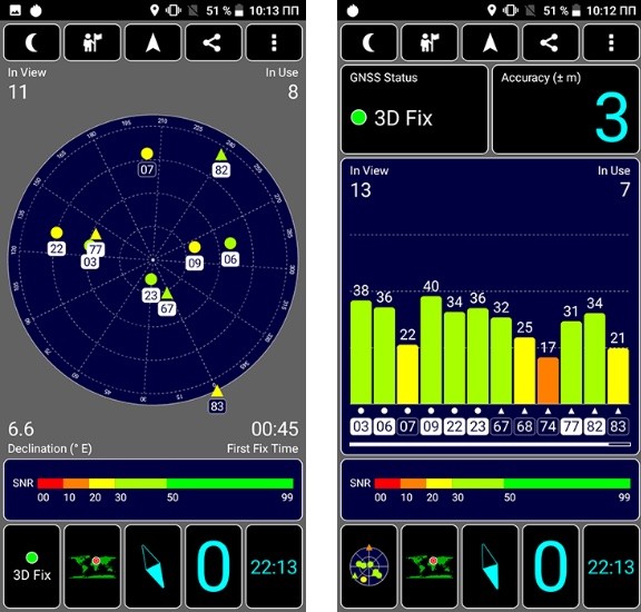Если к Bluetooth, Wi-Fi и LTE вопросов обычно не возникает, и в Doogee S55 все это тоже работает отлично, то тестировать навигацию я боялся. Точнее, боялся разочароваться, поскольку навигация на аппаратах с чипсетами MediaTek нередко тупит и глючит. Но нет, Doogee S55 оказался исключением. Находит штук 7-10 спутников российской и американской систем, в процессе перемещений (в том числе и на скорости в машине) их не теряет. Все более-менее нормально с навигацией, в общем.