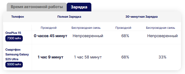 По результатам наших тестов OnePlus 15 полностью заряжается за 45 минут, в то время как Galaxy заряжается за 69 минут. Помните, что у OnePlus 15 аккумулятор гораздо большей ёмкости, так что это всё равно впечатляет.