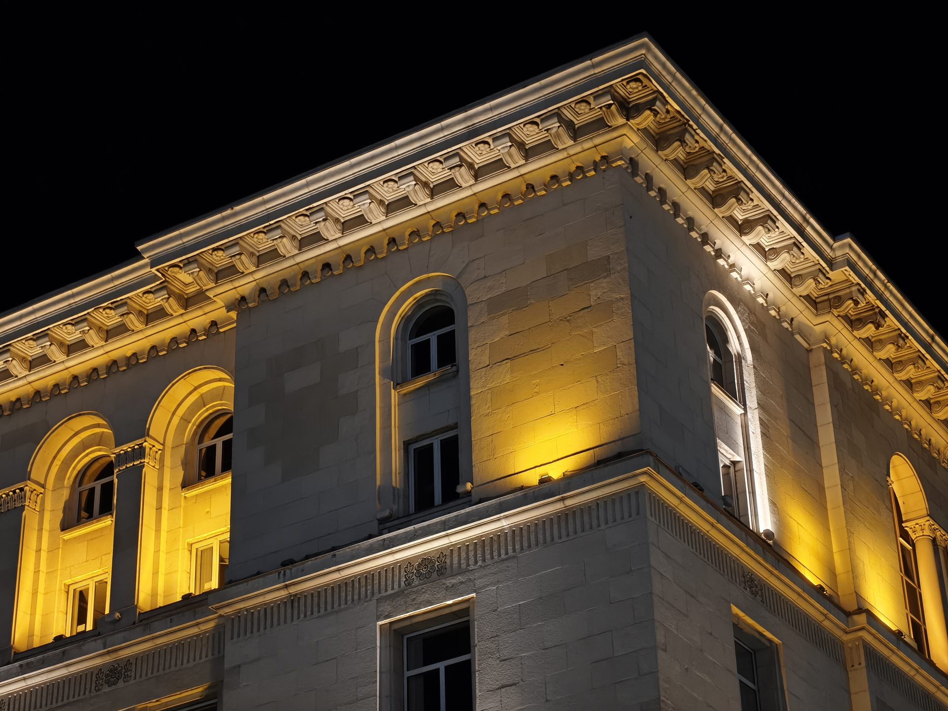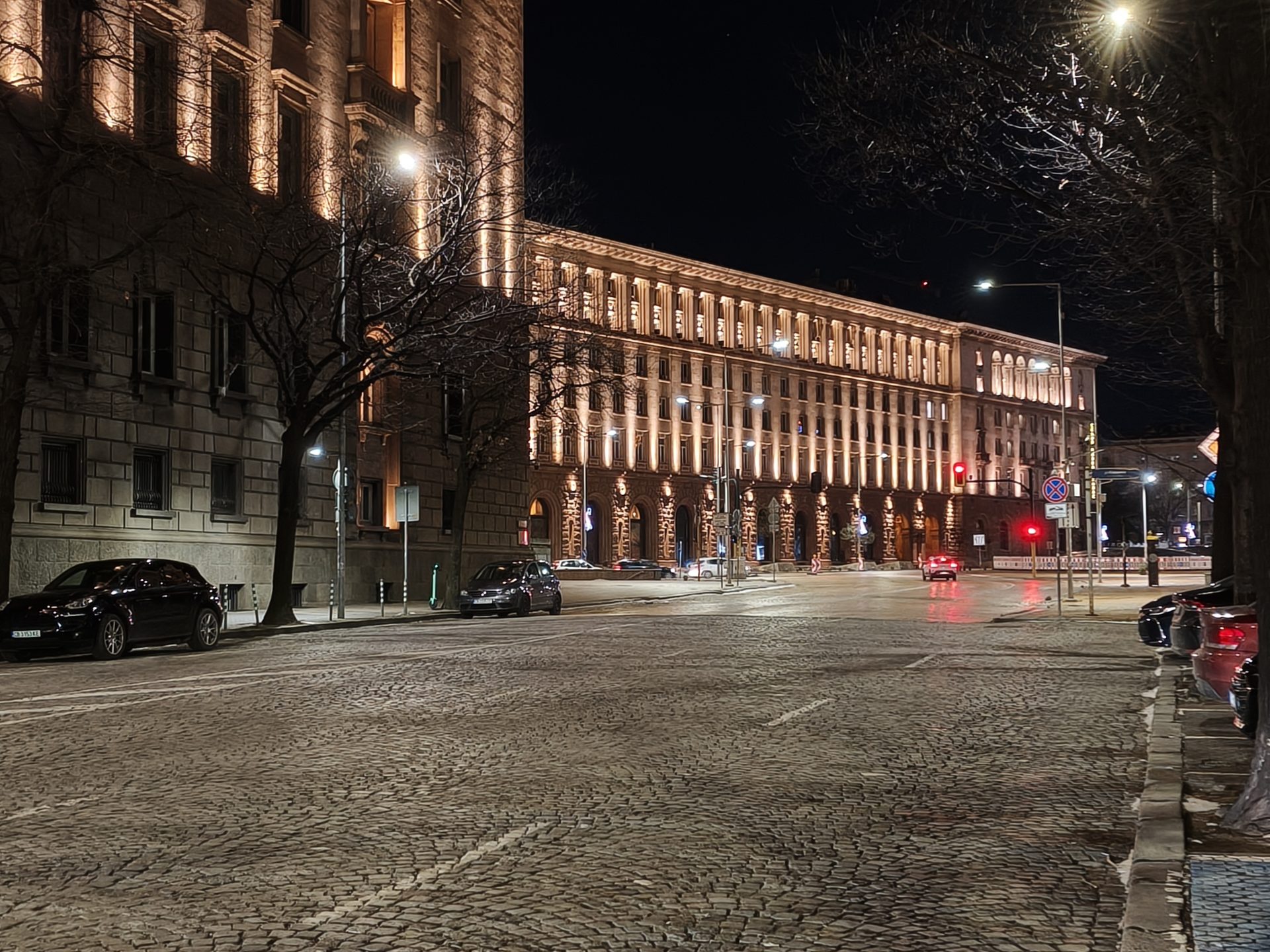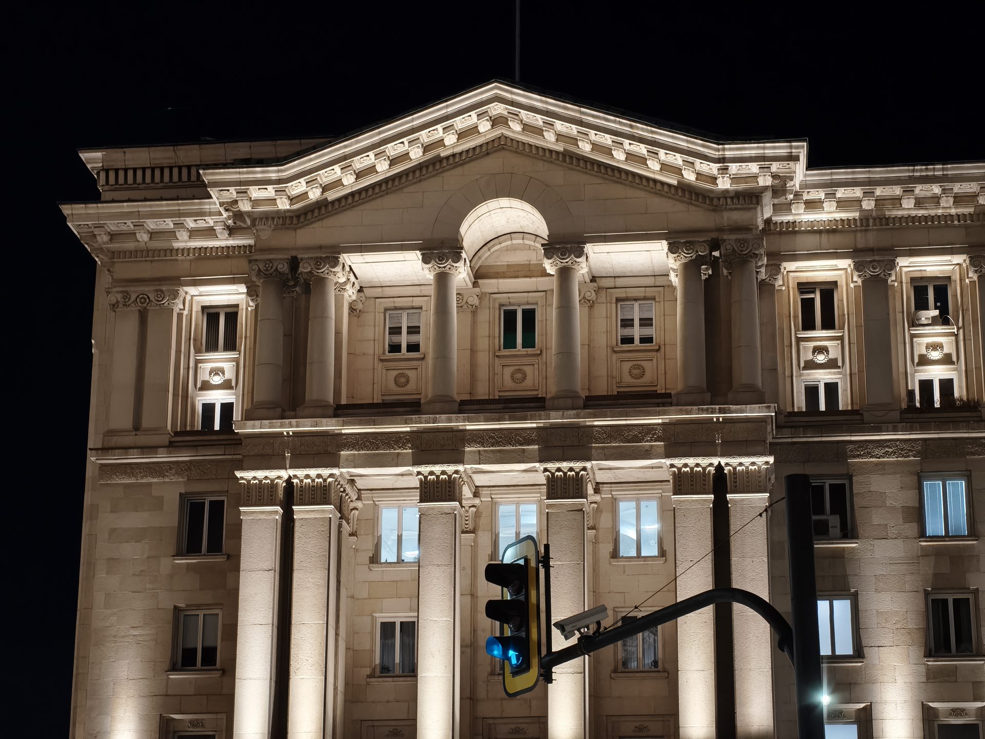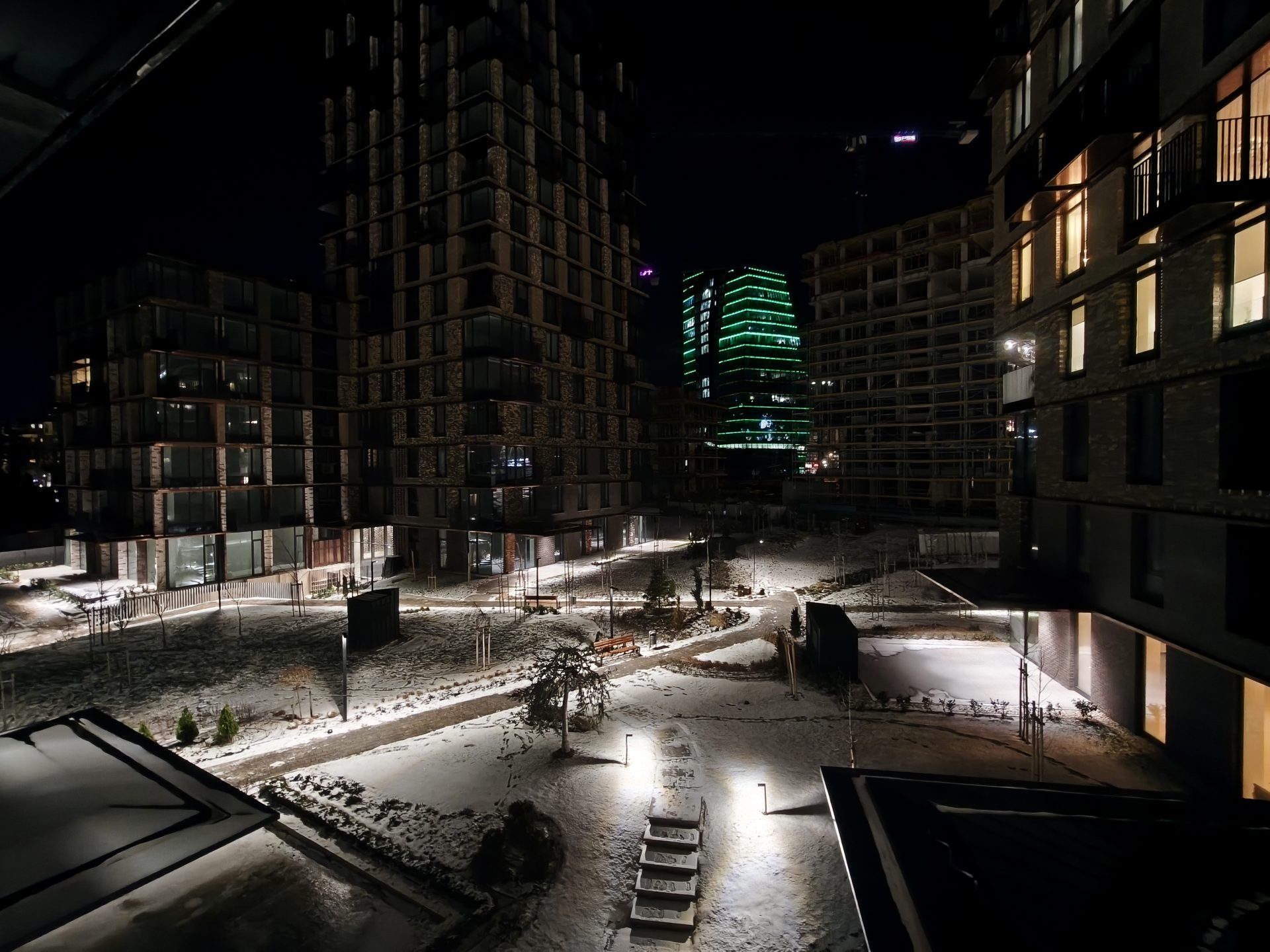 Качество ночных снимков на телеобъектив хорошее, но не выдающееся. Уровень детализации неплохой. Динамический диапазон достойный, баланс белого обычно точен, а насыщенность на уровне, хотя иногда встречаются бледноватые кадры (например, фасад здания на одном из снимков в реальности был заметно теплее).