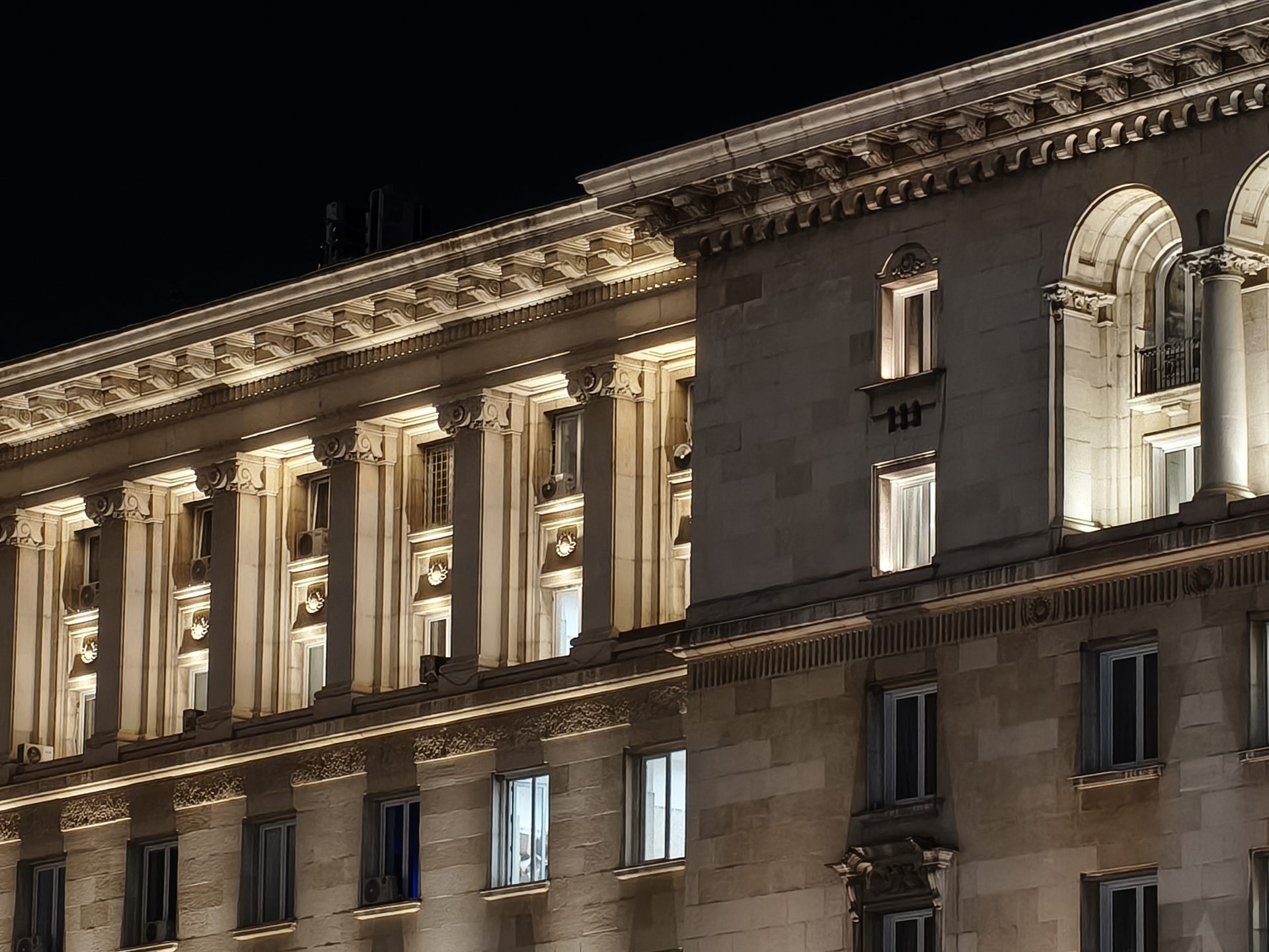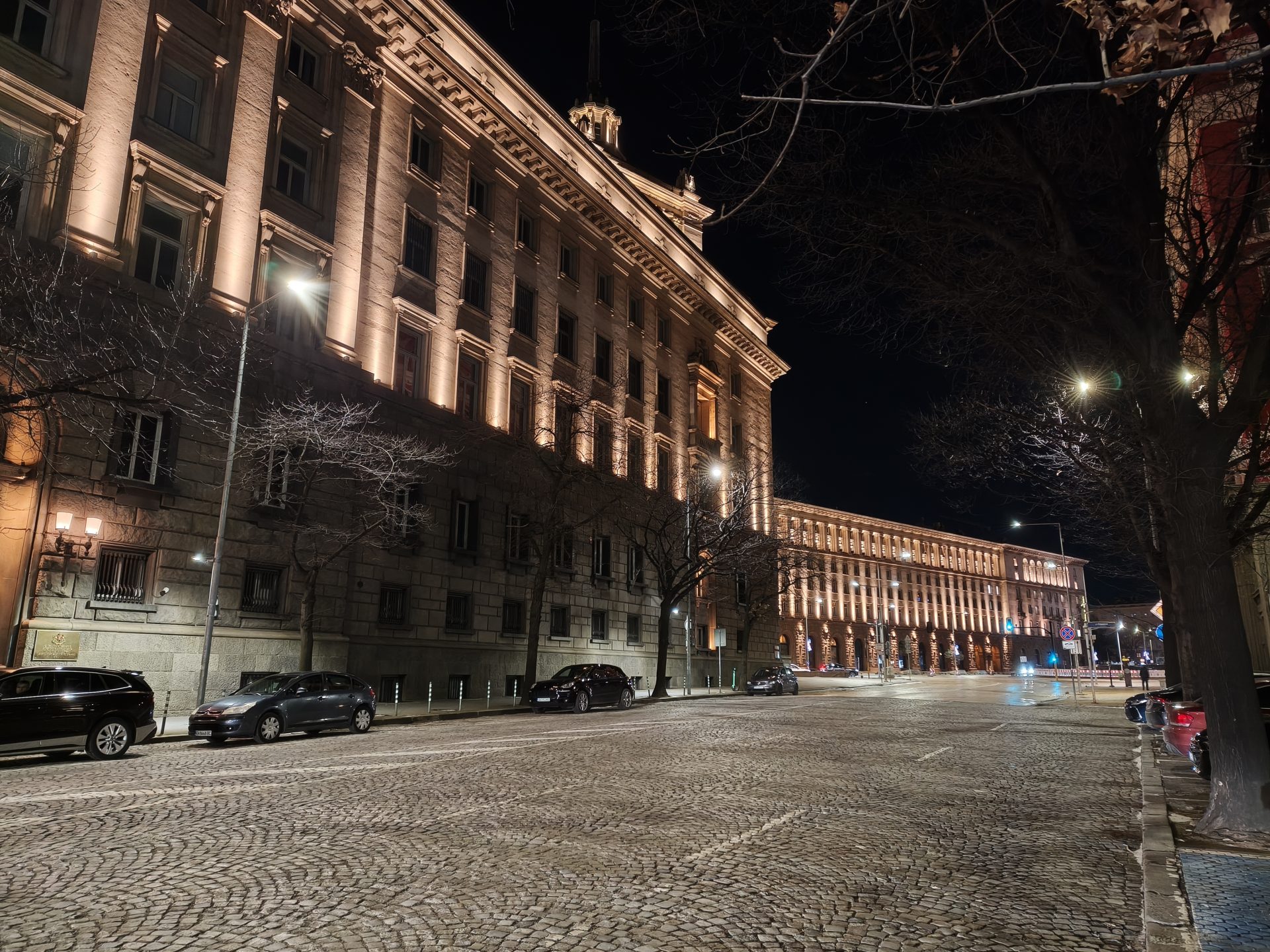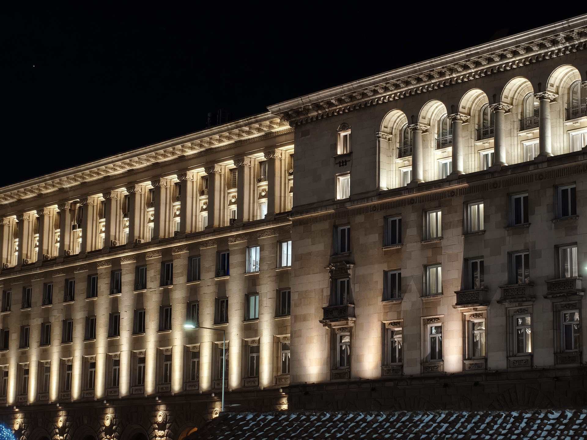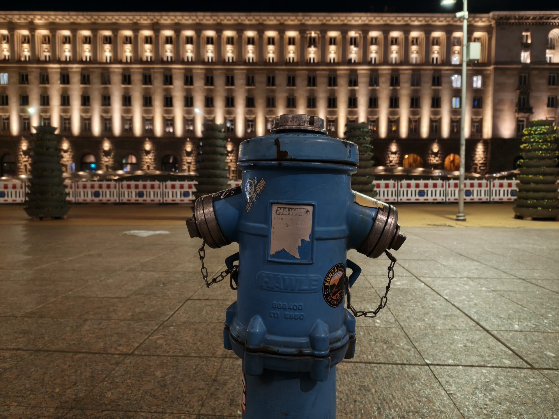 Качество ночных снимков на телеобъектив хорошее, но не выдающееся. Уровень детализации неплохой. Динамический диапазон достойный, баланс белого обычно точен, а насыщенность на уровне, хотя иногда встречаются бледноватые кадры (например, фасад здания на одном из снимков в реальности был заметно теплее).