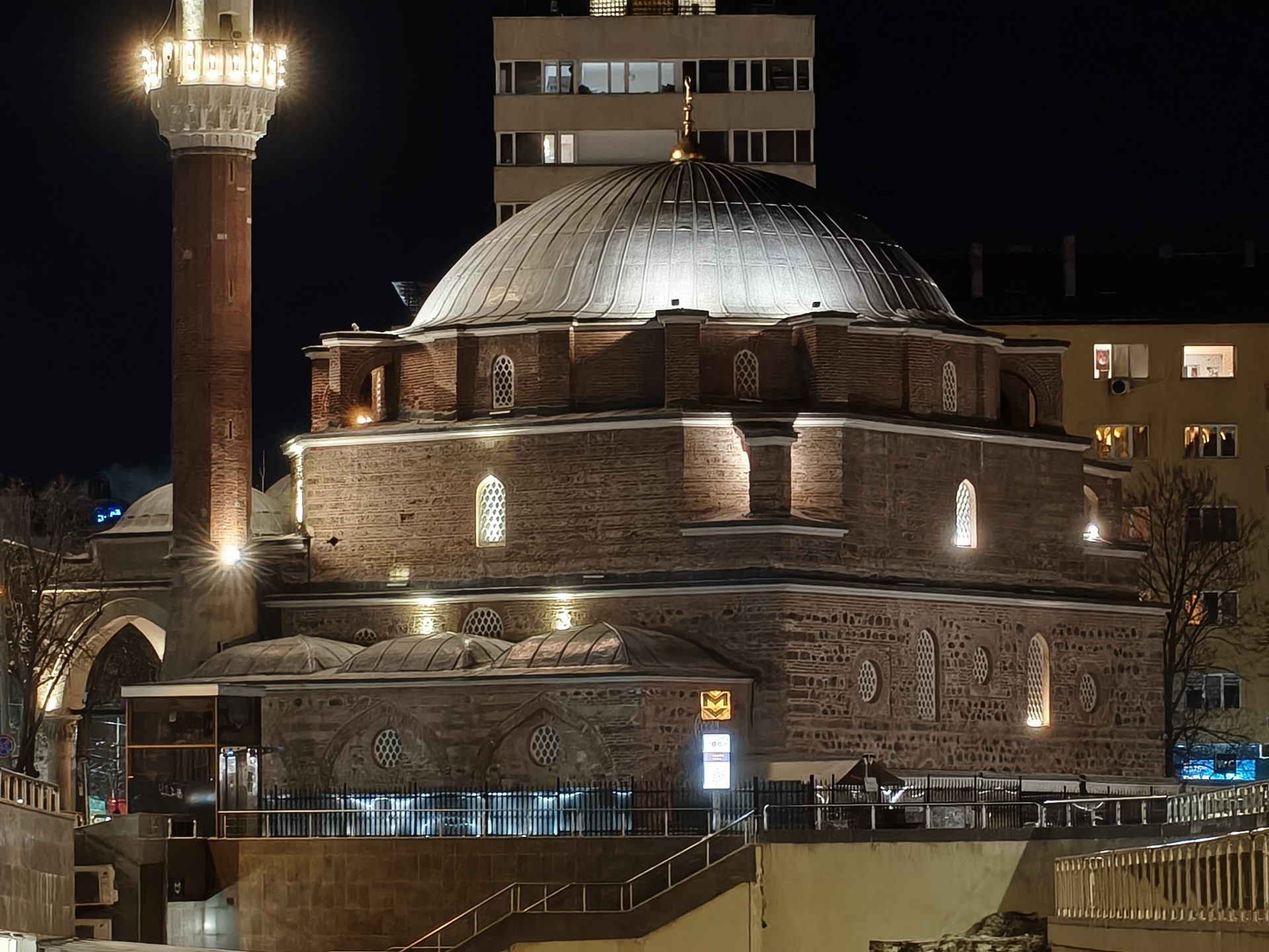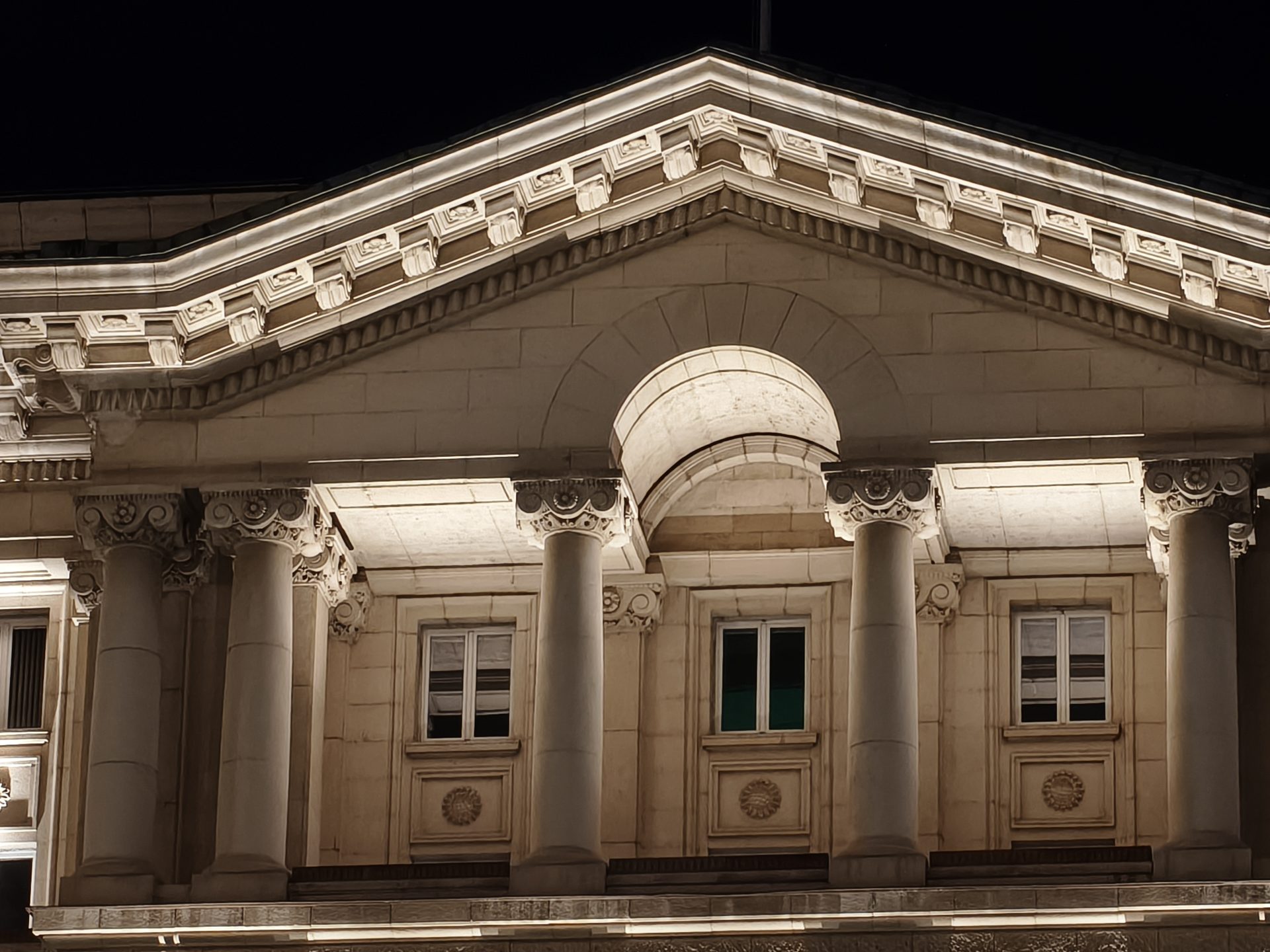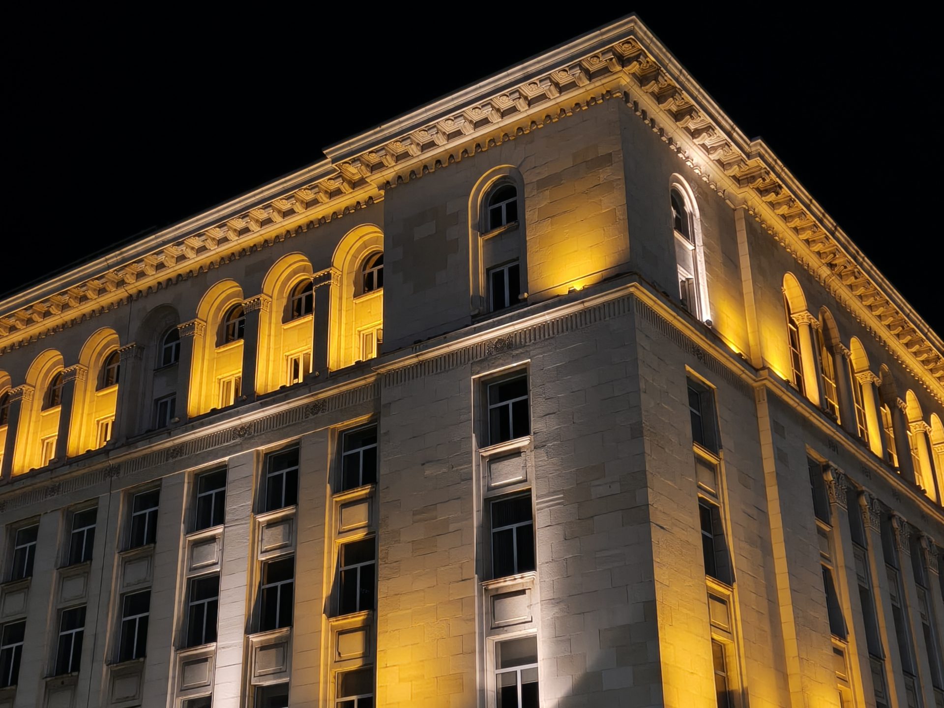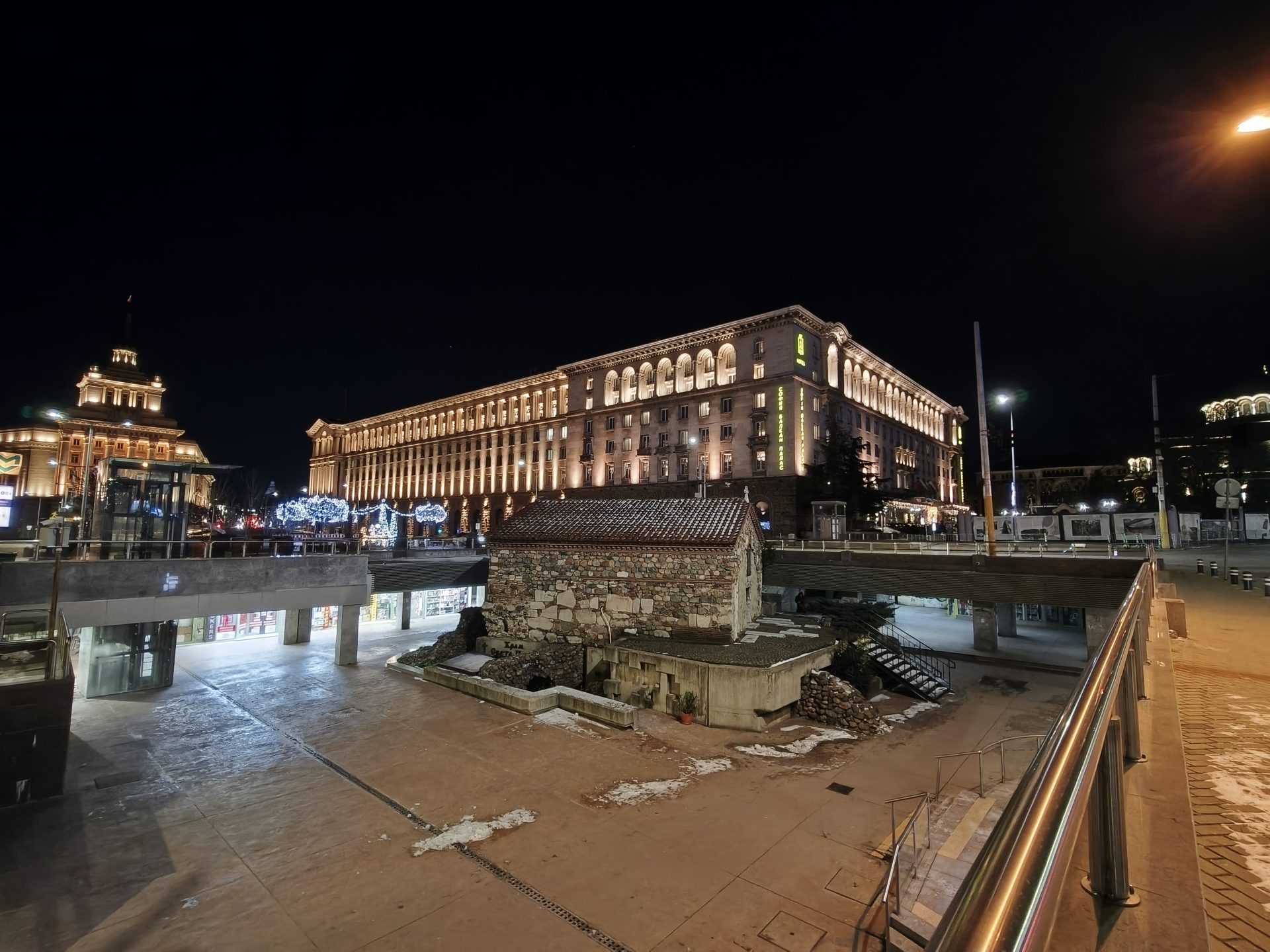 Качество ночных снимков на телеобъектив хорошее, но не выдающееся. Уровень детализации неплохой. Динамический диапазон достойный, баланс белого обычно точен, а насыщенность на уровне, хотя иногда встречаются бледноватые кадры (например, фасад здания на одном из снимков в реальности был заметно теплее).