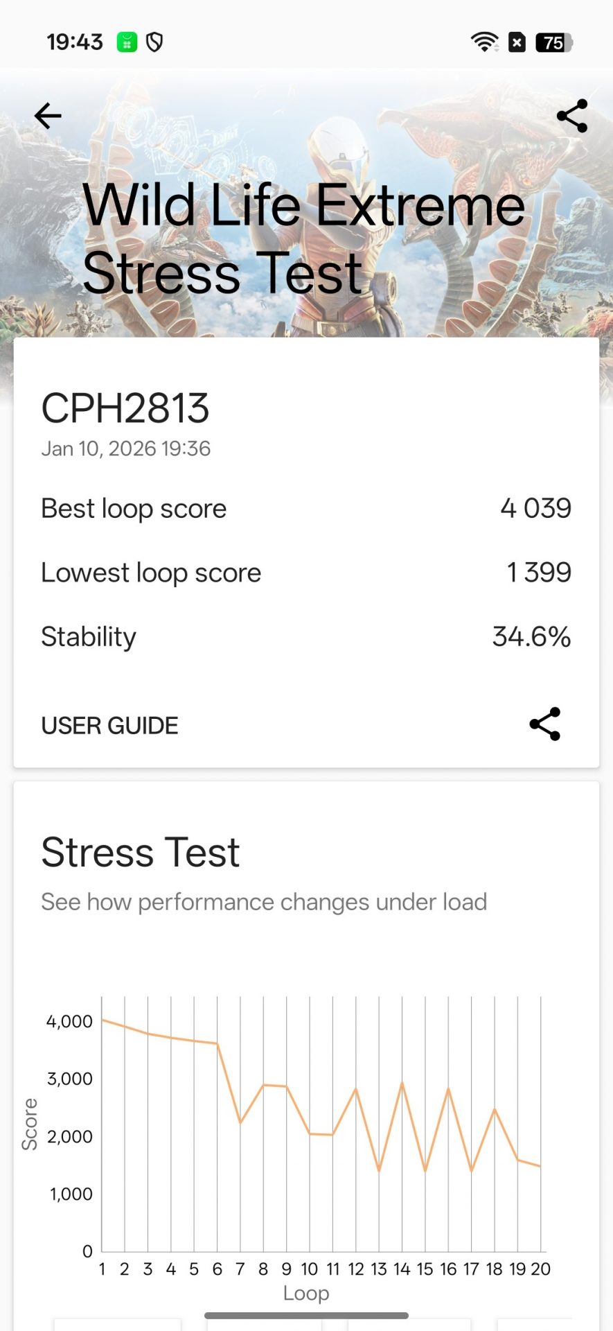 Наконец, Reno15 Pro (mini) работает на действительно быстром чипсете, хотя стабильность производительности под нагрузкой явно не является его сильной стороной. Пиковая мощность быстро падает при длительной нагрузке на процессор или графику, что, впрочем, типично для компактных устройств, которые мы тестировали. Хорошая новость в том, что в повседневной жизни такие экстремальные сценарии встречаются редко.