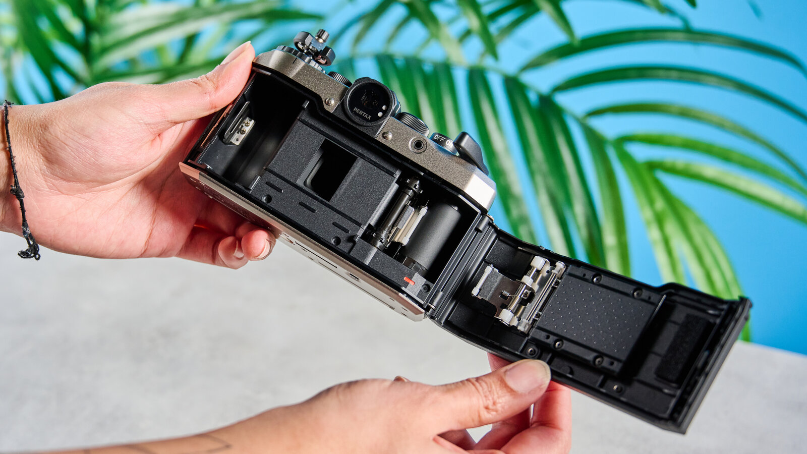 Чтобы начать, нужно открыть заднюю крышку камеры. Вставьте катушку и вытяните немного пленки, зацепите перфорацию за зубцы, а затем вращайте рычаг перемотки, пока камера не захватит немного пленки. Как только вы это сделаете, вы готовы к съемке.