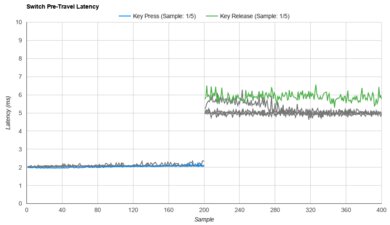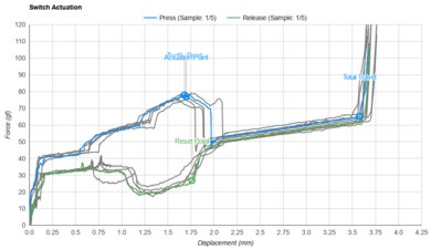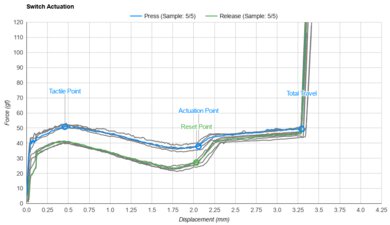 Тем не менее, очень слабое усилие срабатывания этих переключателей может стать недостатком, если вы немного нервничаете во время игры или просто любите класть кончики пальцев на колпачки клавиш, так как это может привести к случайным нажатиям. Если вас больше интересует тактильная отдача, мы рекомендуем переключатели Kailh Speed Copper. Они обеспечивают такую же высокую производительность с минимальной задержкой, но имеют очень ранний тактильный отклик.