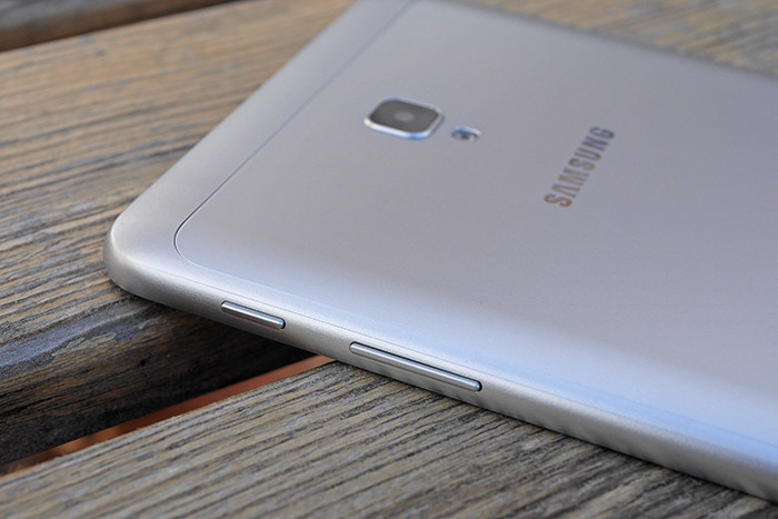 Корпус у планшета металлический. Это, конечно, не стекло, как у флагманского Galaxy Tab S3, но все равно неплохо. Лучше, чем быстро царапающийся пластик, который встречается в ряде недорогих планшетов корейского производителя. При этом металл в Galaxy Tab A 2017 не очень, гм, металлический. Он гладкий и чуть скользковатый. На ощупь менее приятный, чем тот, что мы видим в тех же iPad от мала до велика.