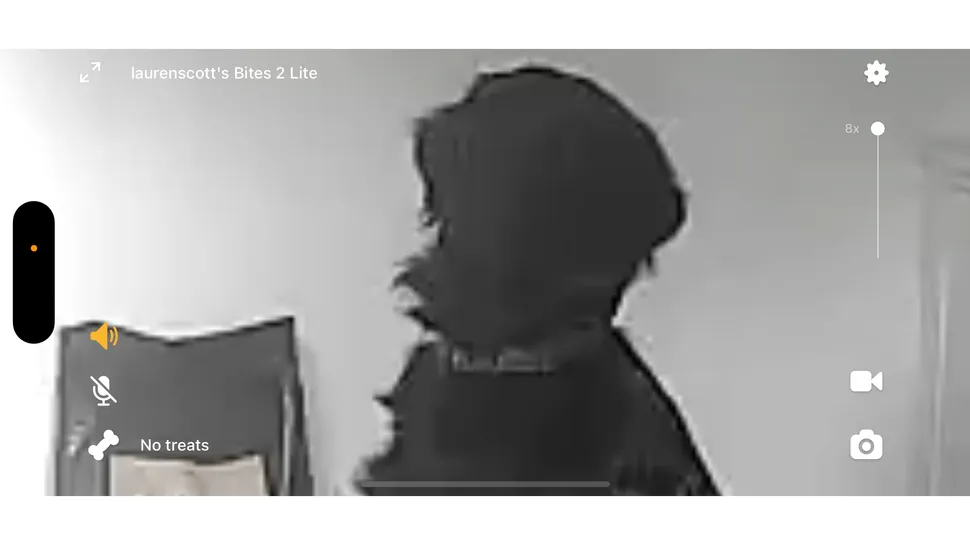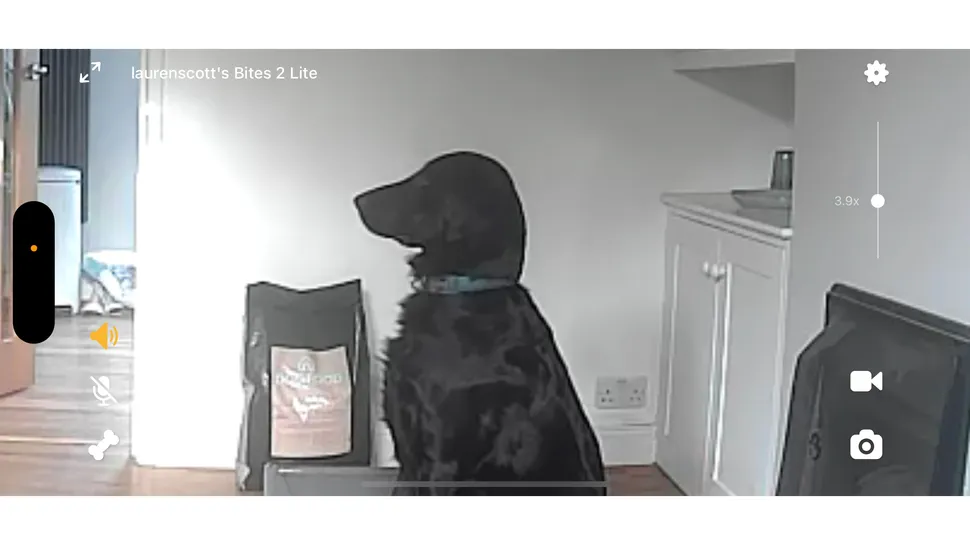 Всё управляется через приложение, и я рад сообщить, что интерфейс прост в использовании. Чтобы бросить лакомство, нужно нажать на значок косточки в прямой трансляции и провести пальцем вверх, чтобы бросить её. Во время тестирования это срабатывало каждый раз, и я должен признать, что мы с моим партнёром немало посмеялись, наблюдая, как Реми носится по комнате, чтобы подобрать свой корм, выброшенный из машины. Что касается более серьёзной дрессировки, то мне удалось заставить её сидеть, пока я говорю в микрофон, и поощрить её, когда она перестала лаять на соседского кота, глядя на него через окно в гостиной.