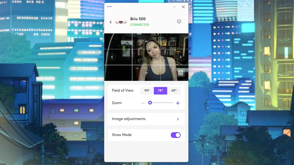 Logitech Brio 500 работает с программным обеспечением Logitech Logi Tune, которое, как я полагаю, является … не созданным Logitech программным обеспечением для веб-камер, предназначенным для новых периферийных устройств (у Logitech есть множество различных приложений для периферийных устройств). С помощью Logi Tune можно обновить прошивку Brio 500, включить такие функции, как «RightSight» (автоматическое кадрирование с помощью искусственного интеллекта, пока в бета-версии) и «Show Mode» (делает предметы на вашем столе более читабельными/видимыми), а также изменить поле зрения. Logi Tune также является приложением для повышения продуктивности и интегрируется с приложениями для ведения календаря и проведения видеоконференций, чтобы (в некотором роде) оптимизировать ваше расписание.