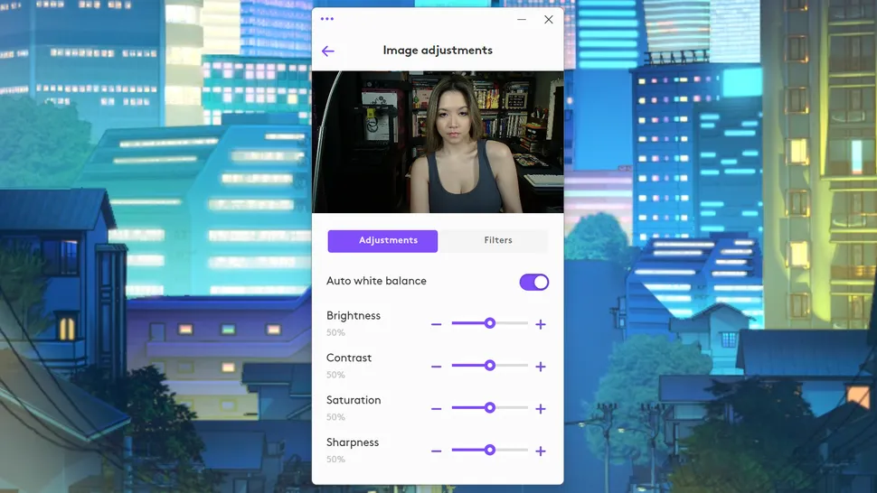 В Logi Tune также есть раздел настройки изображения с переключателями для автофокусировки, автоматической экспозиции, автоматического баланса белого и HDR, а также ползунками для регулировки яркости, контрастности, насыщенности и резкости. Если отключить автофокусировку, автоматическую экспозицию или автоматический баланс белого, появятся ползунки для ручной настройки. Logi Tune — не самое точное и детализированное приложение для веб-камеры. Оно предоставляет немного больше возможностей для настройки, чем приложение Logitech Camera Settings, но мне всё равно не хватает старого программного обеспечения Logitech для веб-камеры.