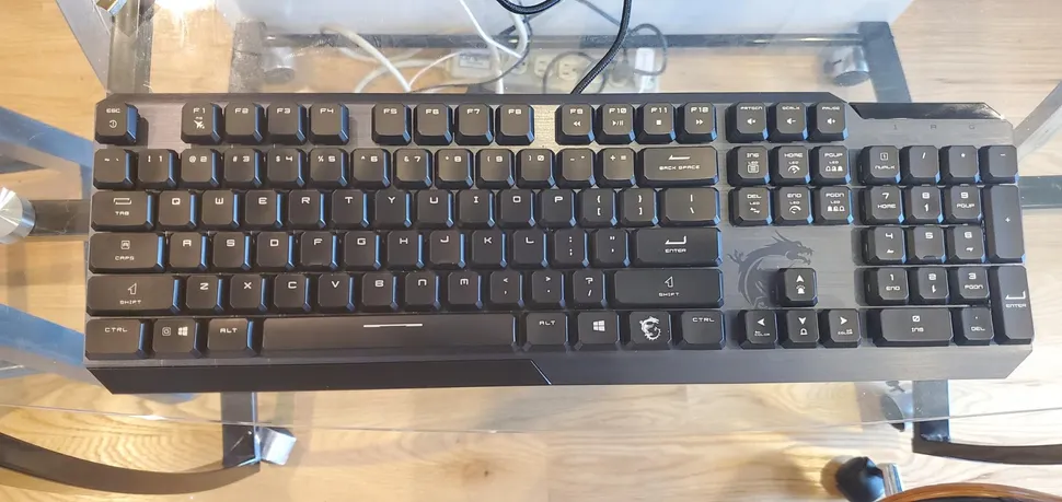 Выделяются клавиши пробела и Shift, которые оказывают немного большее сопротивление, чем другие клавиши. Это не редкость для клавиши пробела, и мы даже видели, как некоторые производители использовали для неё альтернативные переключатели. Мы проверили, и оказалось, что клавиши пробела и Shift используют одни и те же низкопрофильные переключатели Kailh, но каждый переключатель также имеет две защёлки для повышения сопротивления. Мне понравилось, что пробел нажимается так же, как и переключатели в G.Skill KM360, где все клавиши, кроме пробела, оснащены линейными переключателями Cherry MX Red, а для нажатия пробела требуется больше усилий и он ощущается заметно более жёстким. Но клавиша Shift на MSI, которую я часто использую при наборе текста, из-за дополнительной жёсткости скорее мешает, чем помогает.